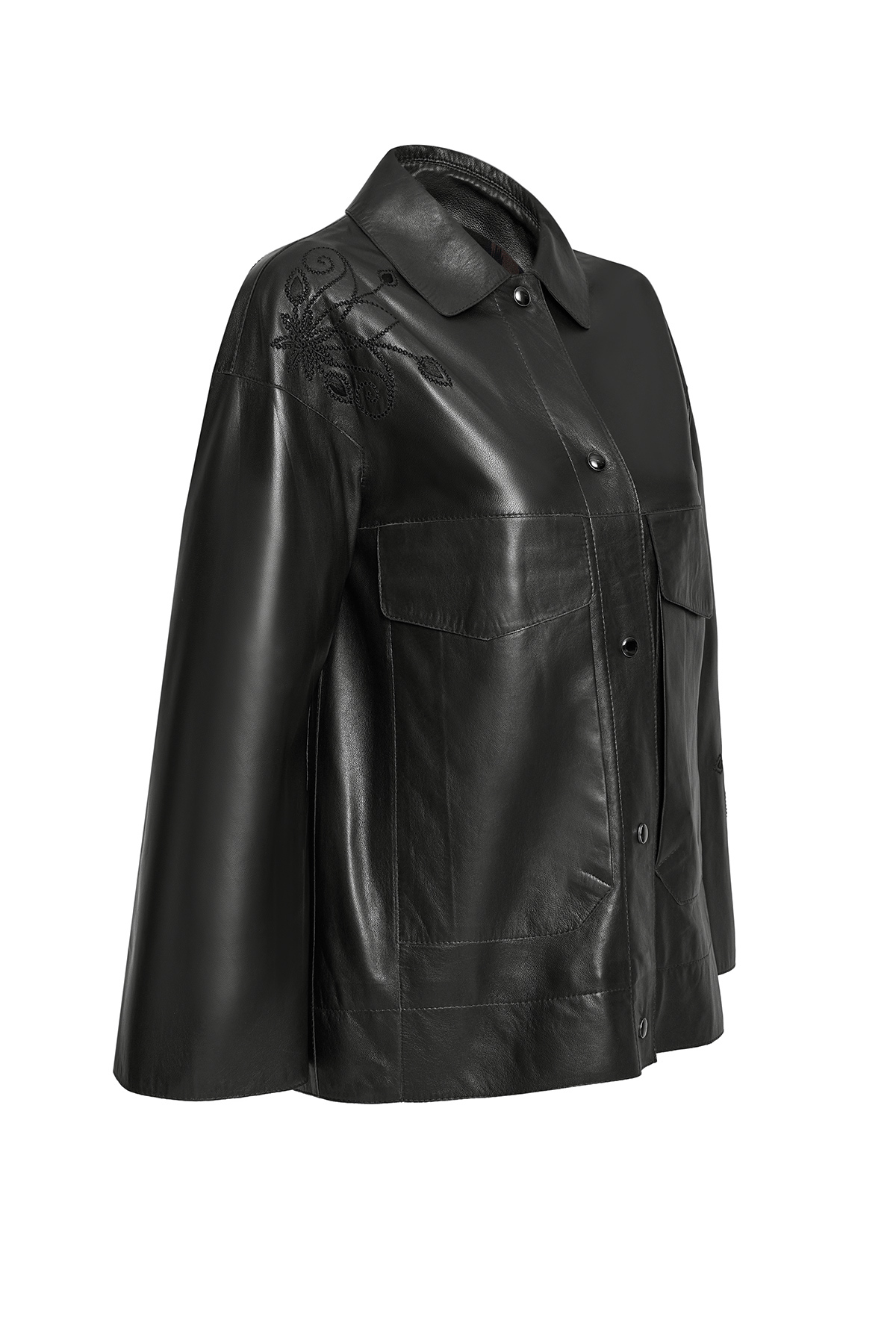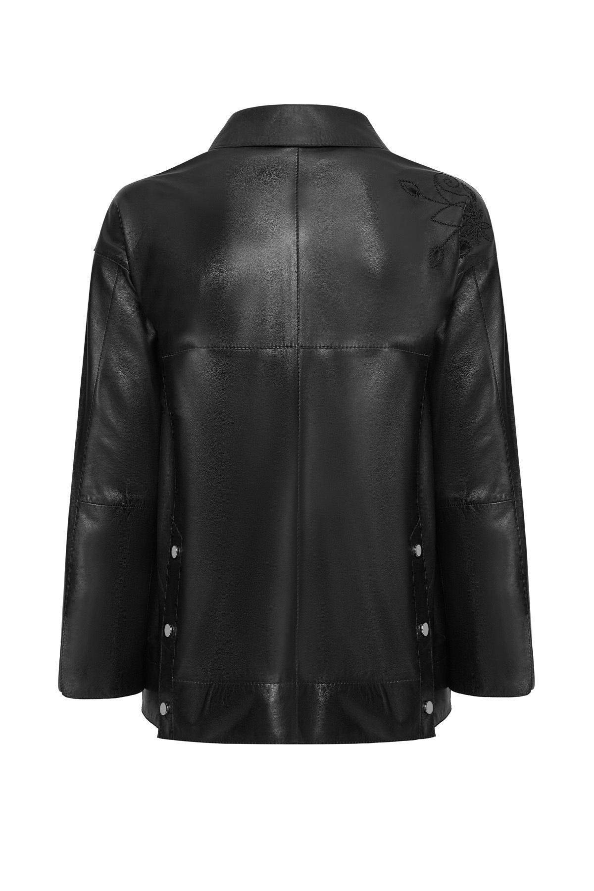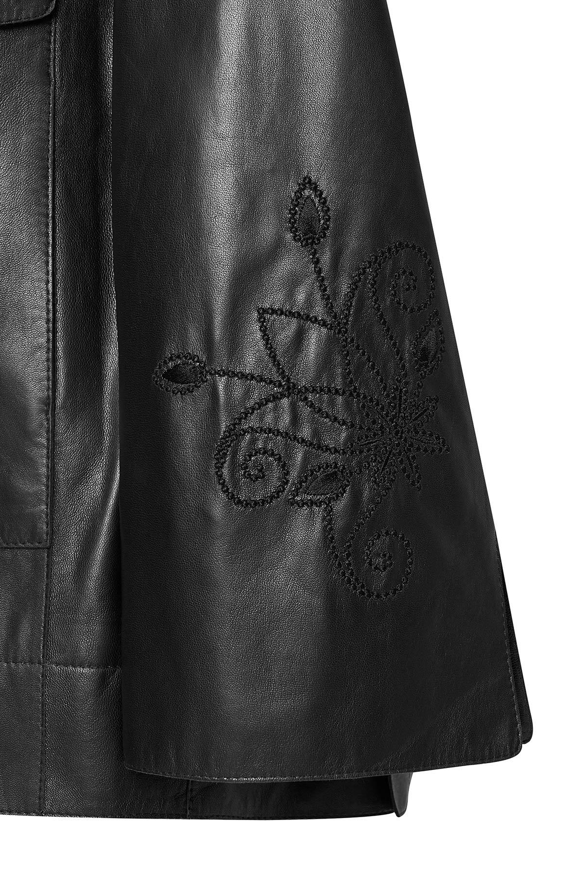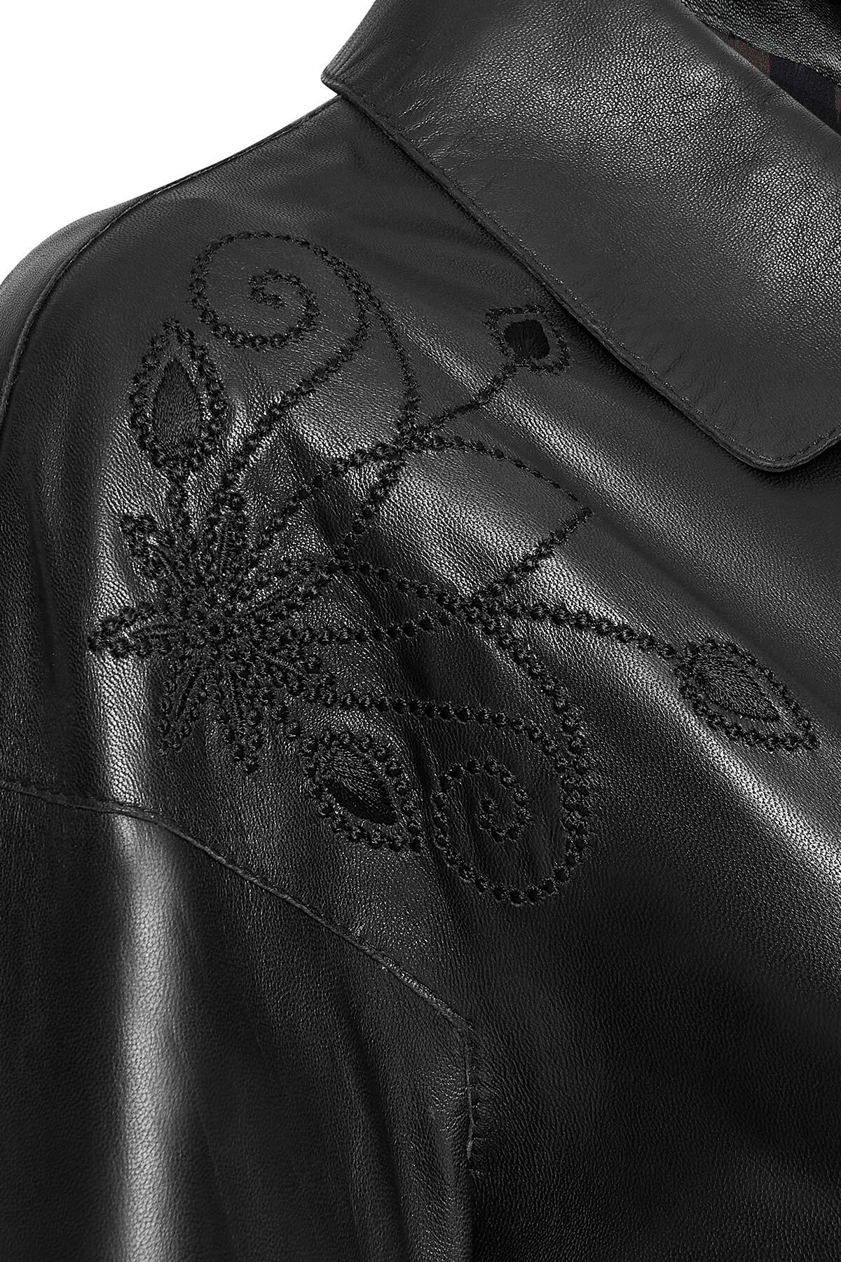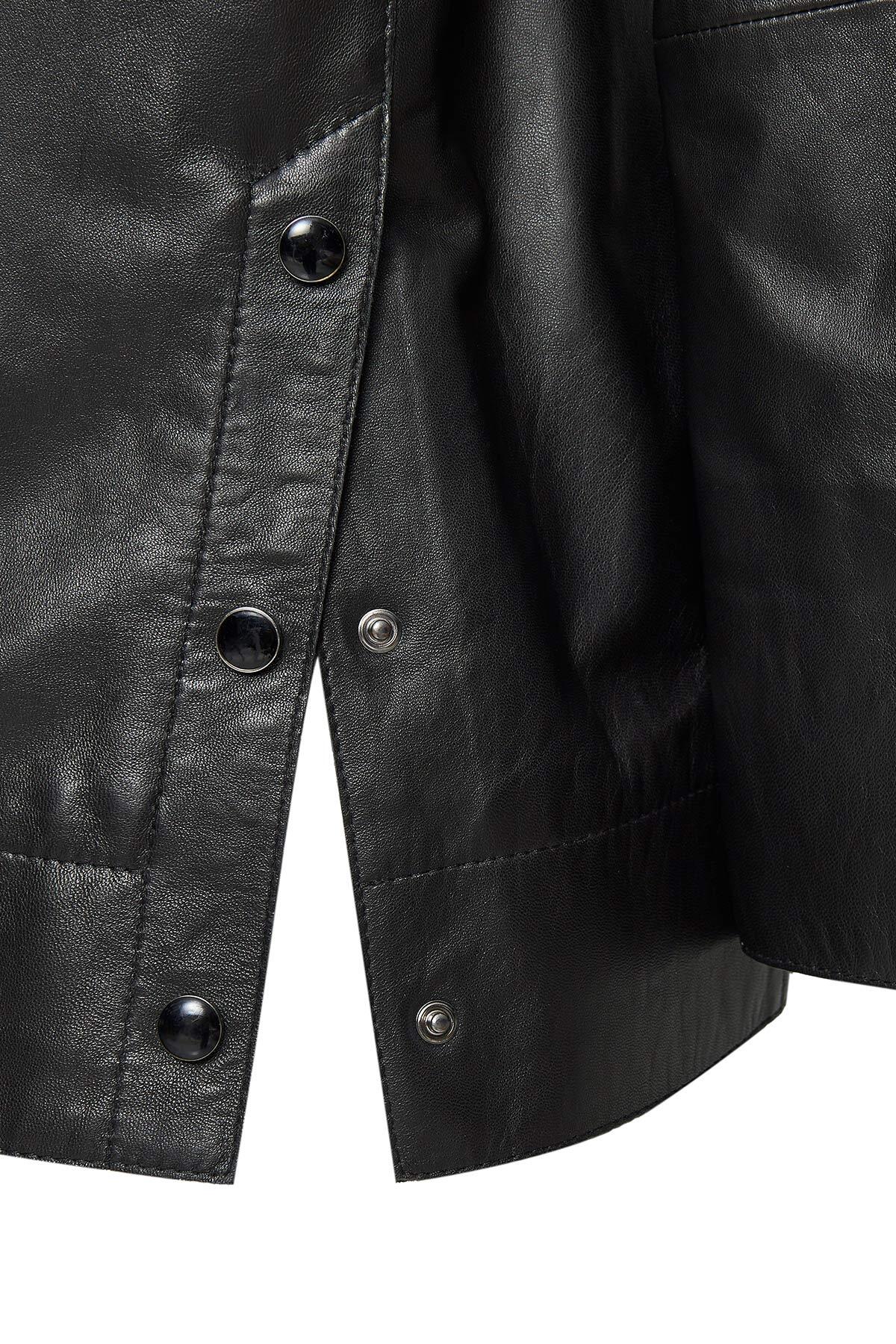 کاپشن چرمی مشکی زنانه جنیفر دارای پوست گوسفند است.