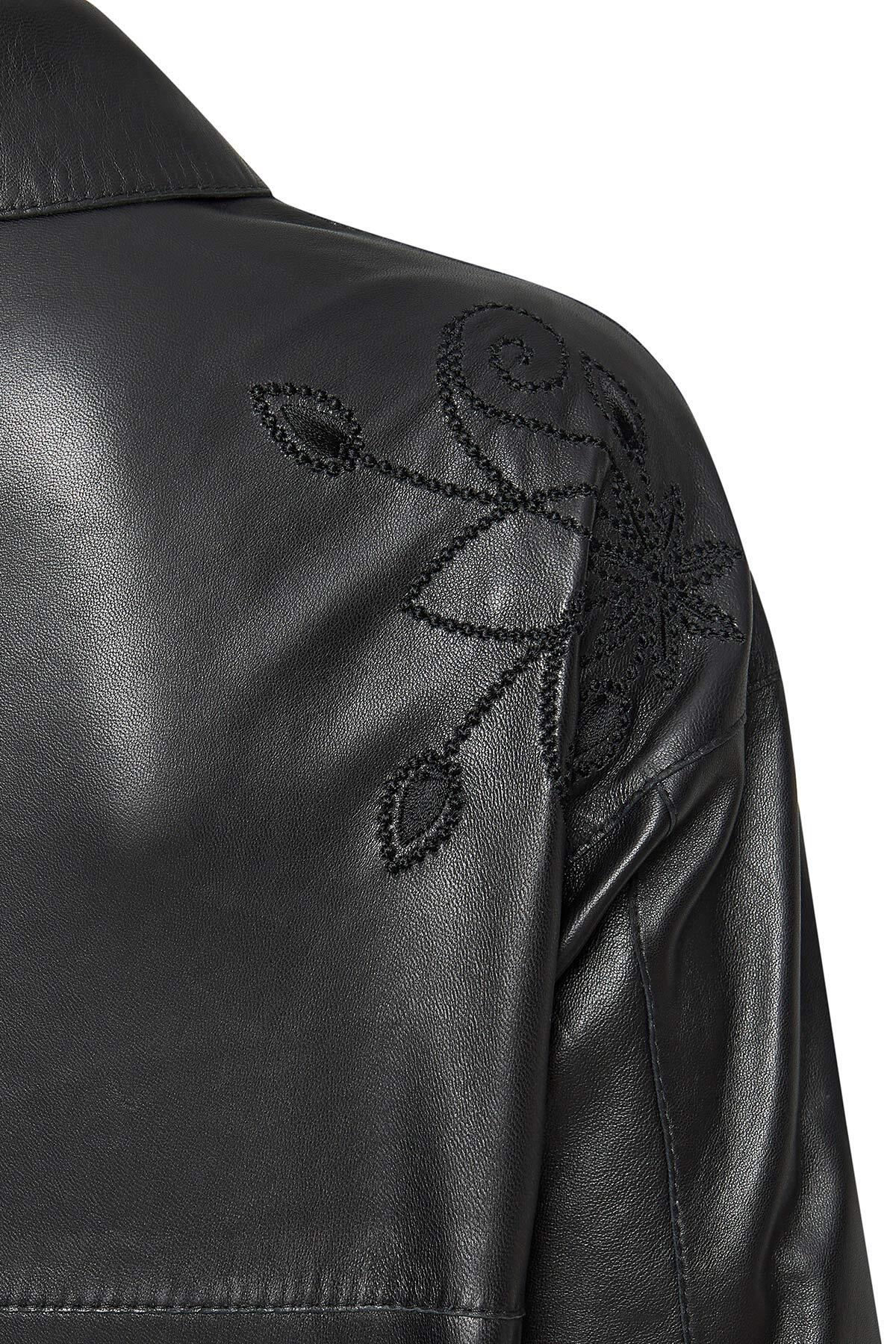 کاپشن چرمی زنانه جنیفر مشکی 24WGD5228U7