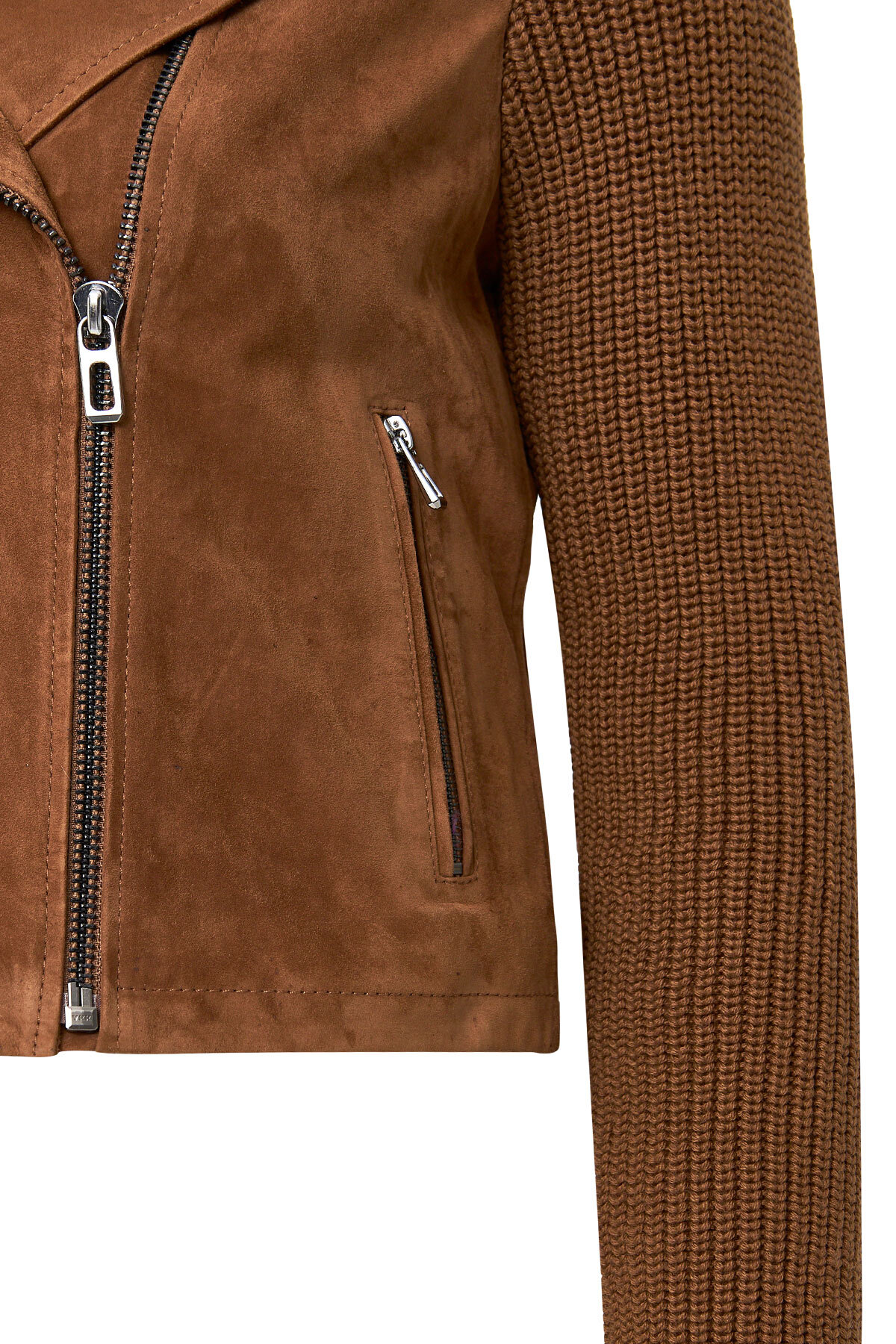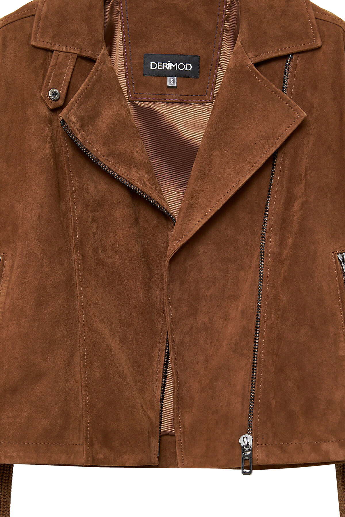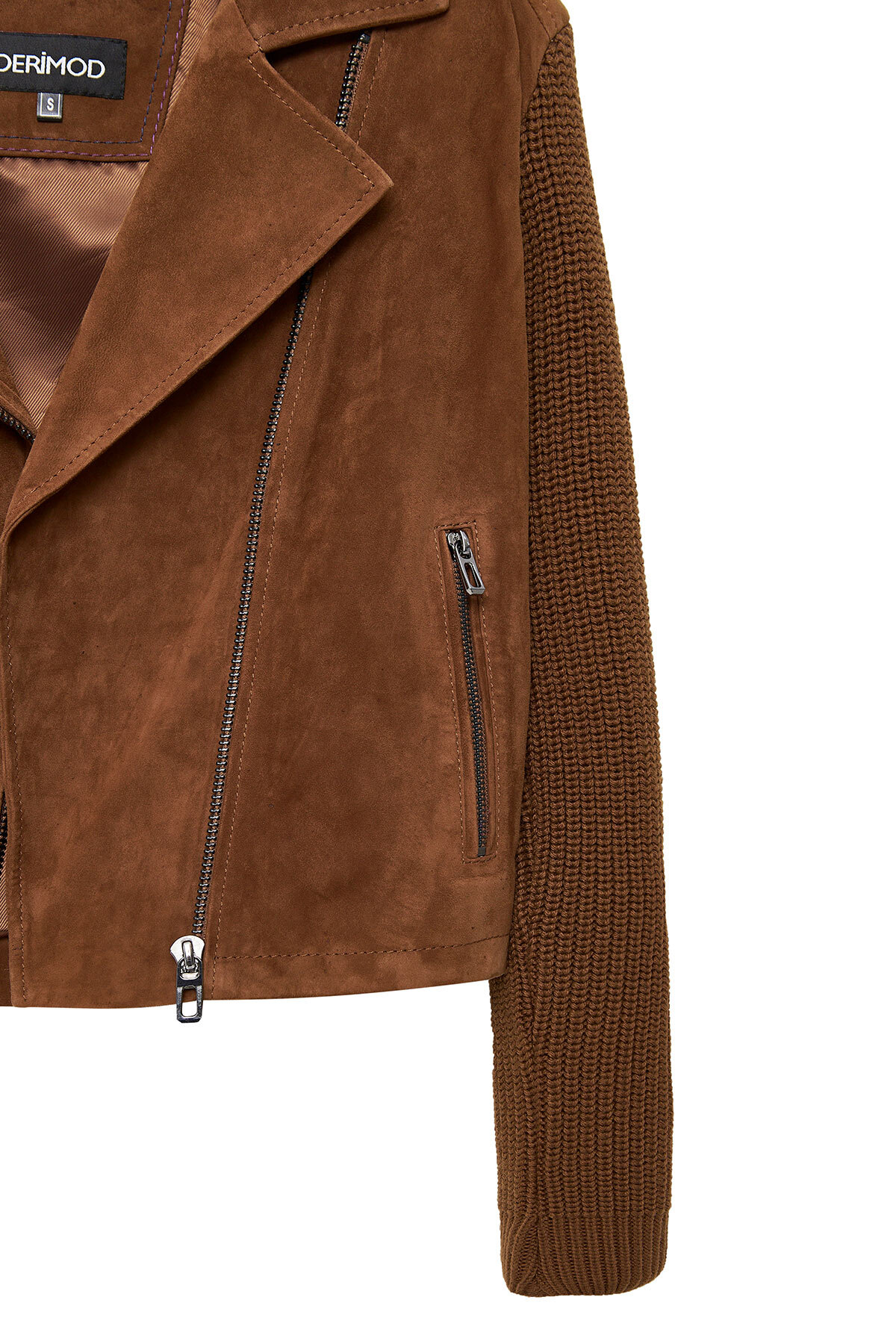 کاپشن چرم جیر قهوهای دو دکمه زنانه Marcy از پوست گوسفند ساخته شده است.