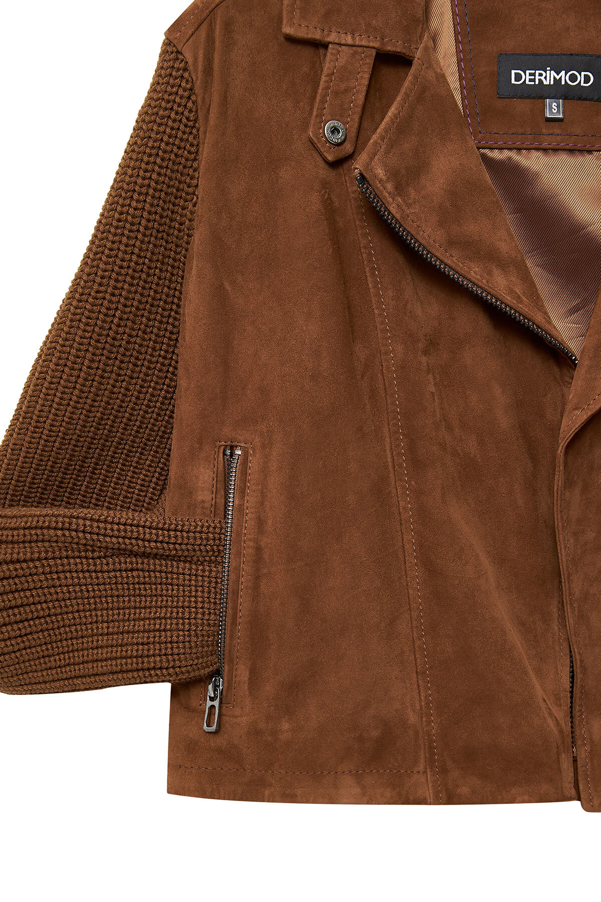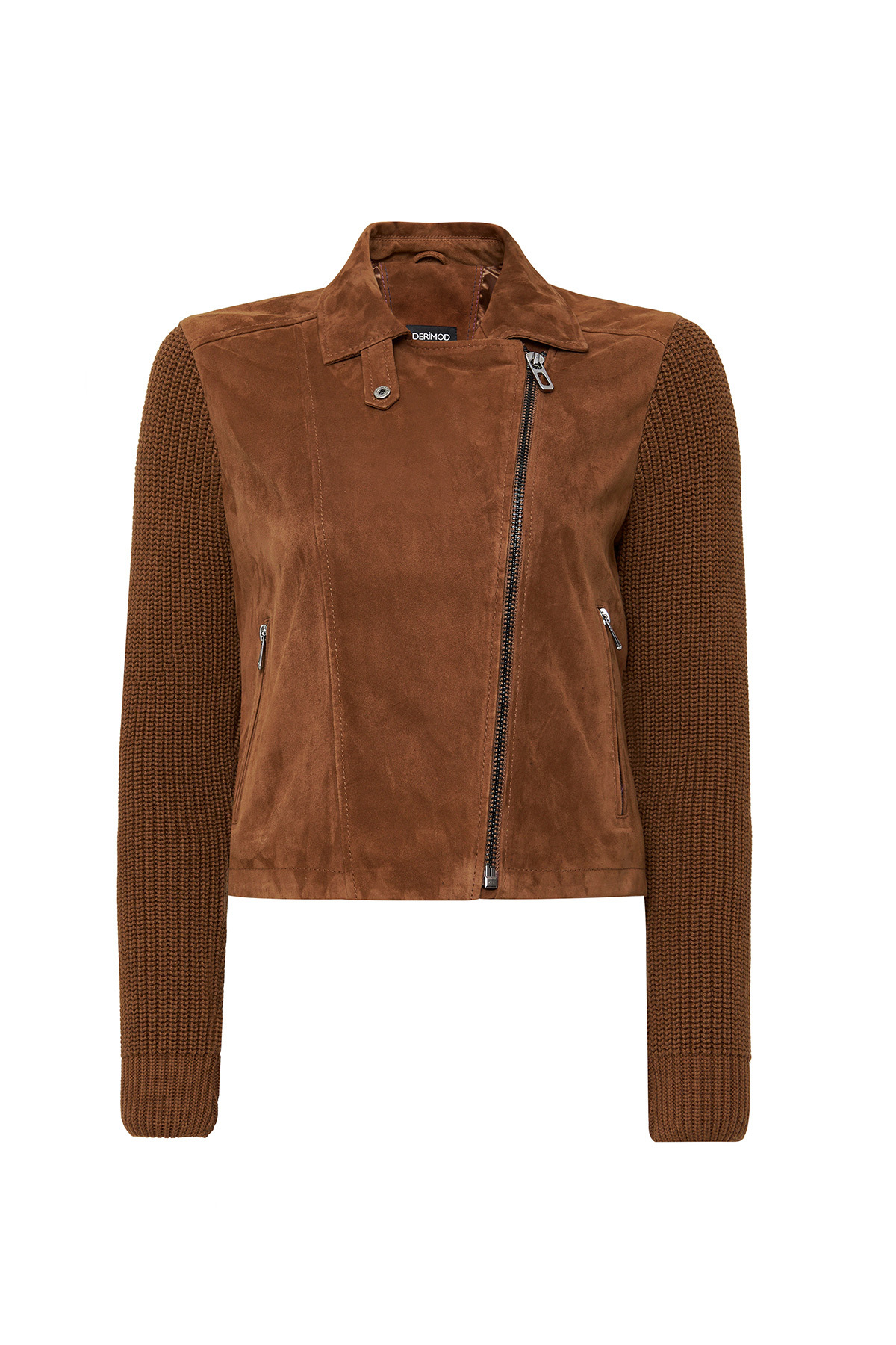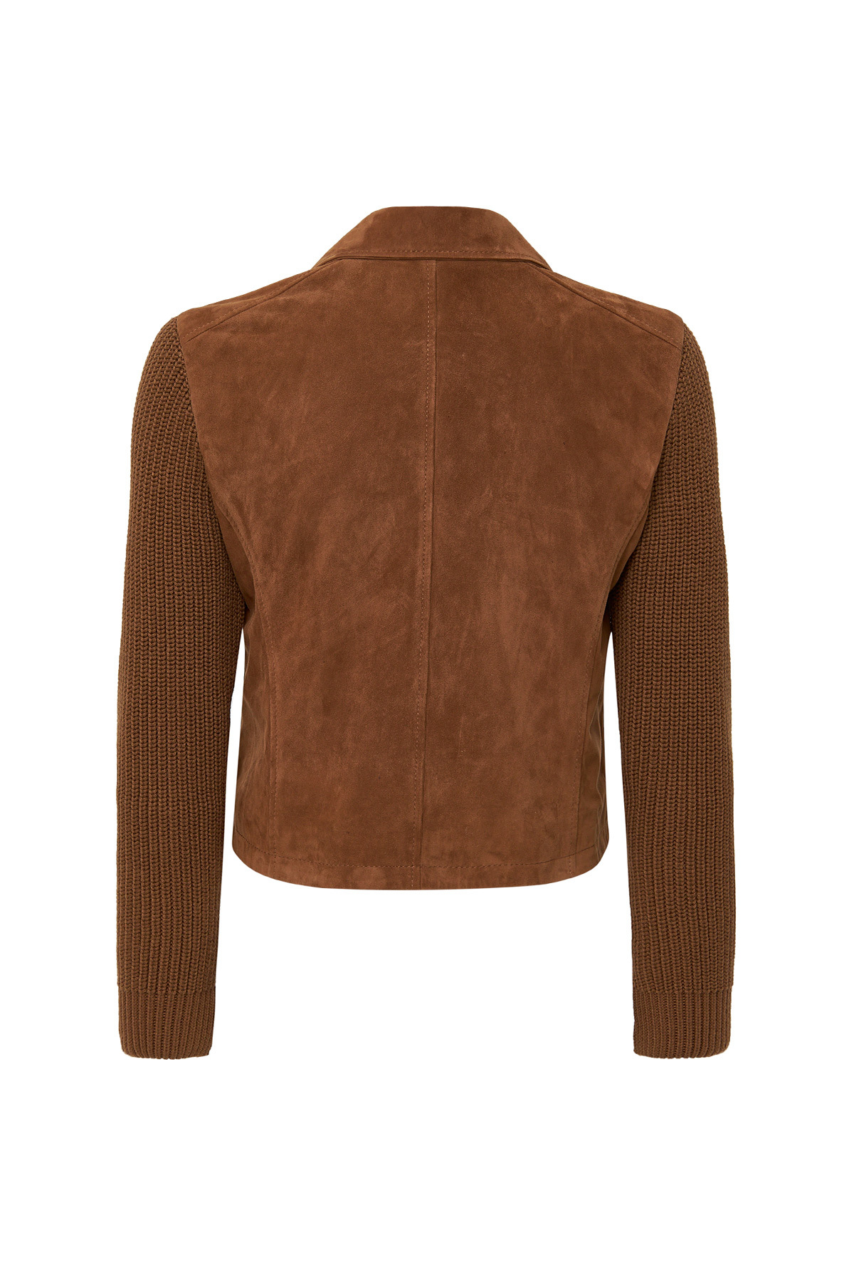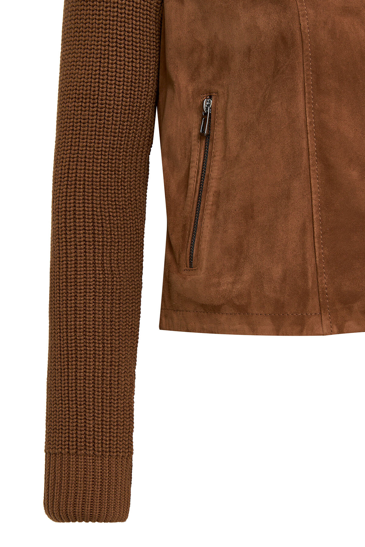 کاپشن چرم جیر قهوهای دو دکمه زنانه Marcy از پوست گوسفند ساخته شده است.