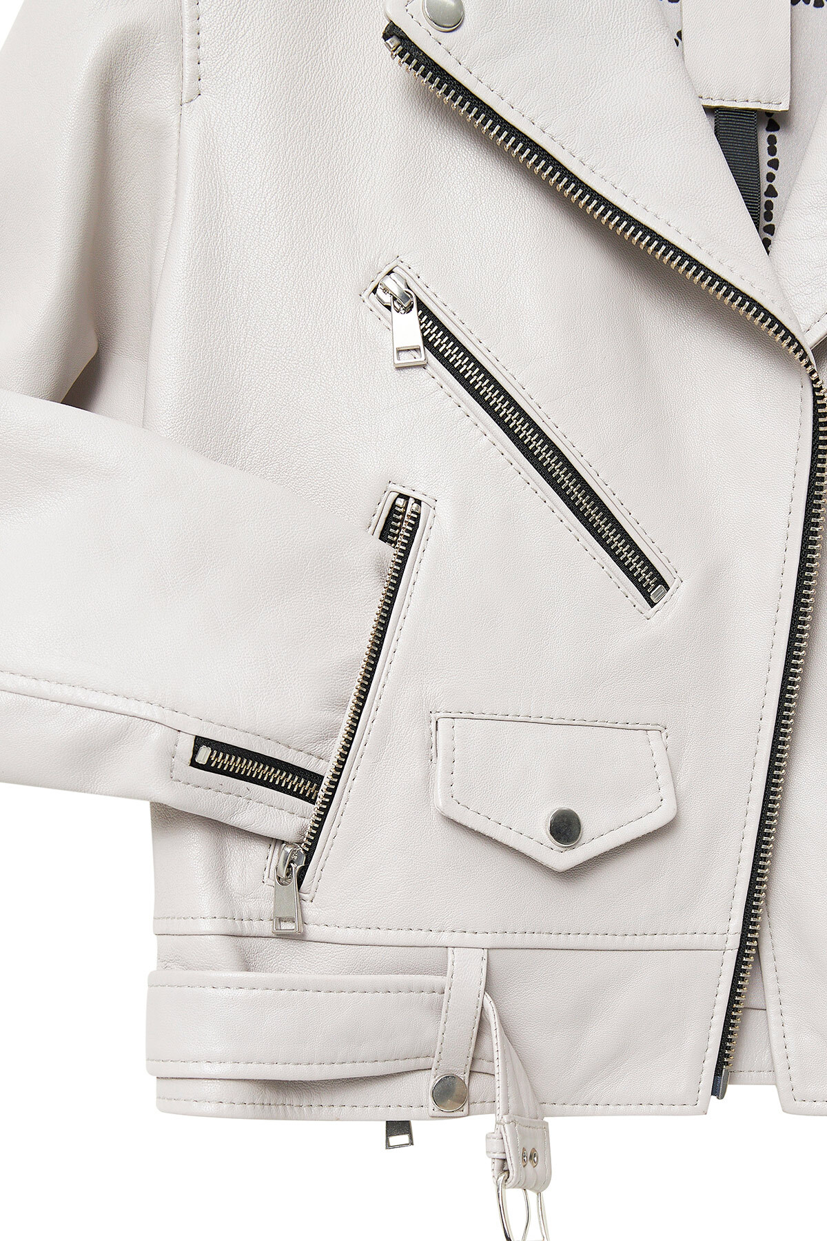 کاپشن چرمی زنانه New Age مدل 24WGD5983VE خاکستری