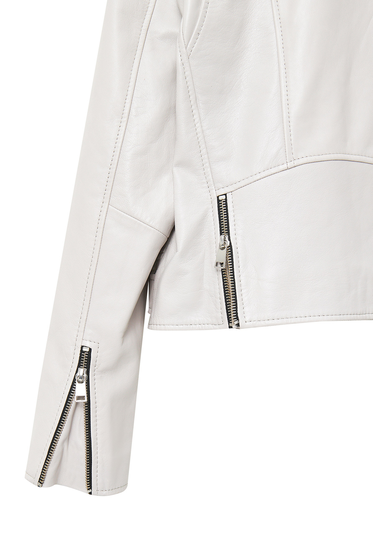 کاپشن چرمی زنانه دو دکمه خاکستری مدل New Age حاوی پوست گوسفند است.