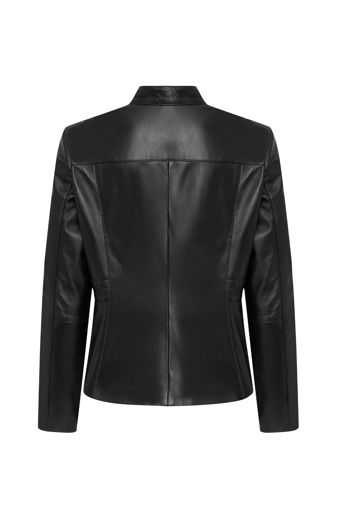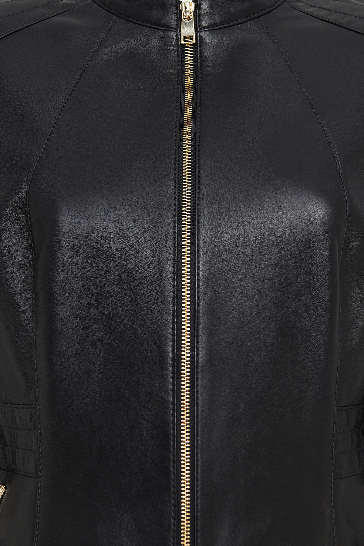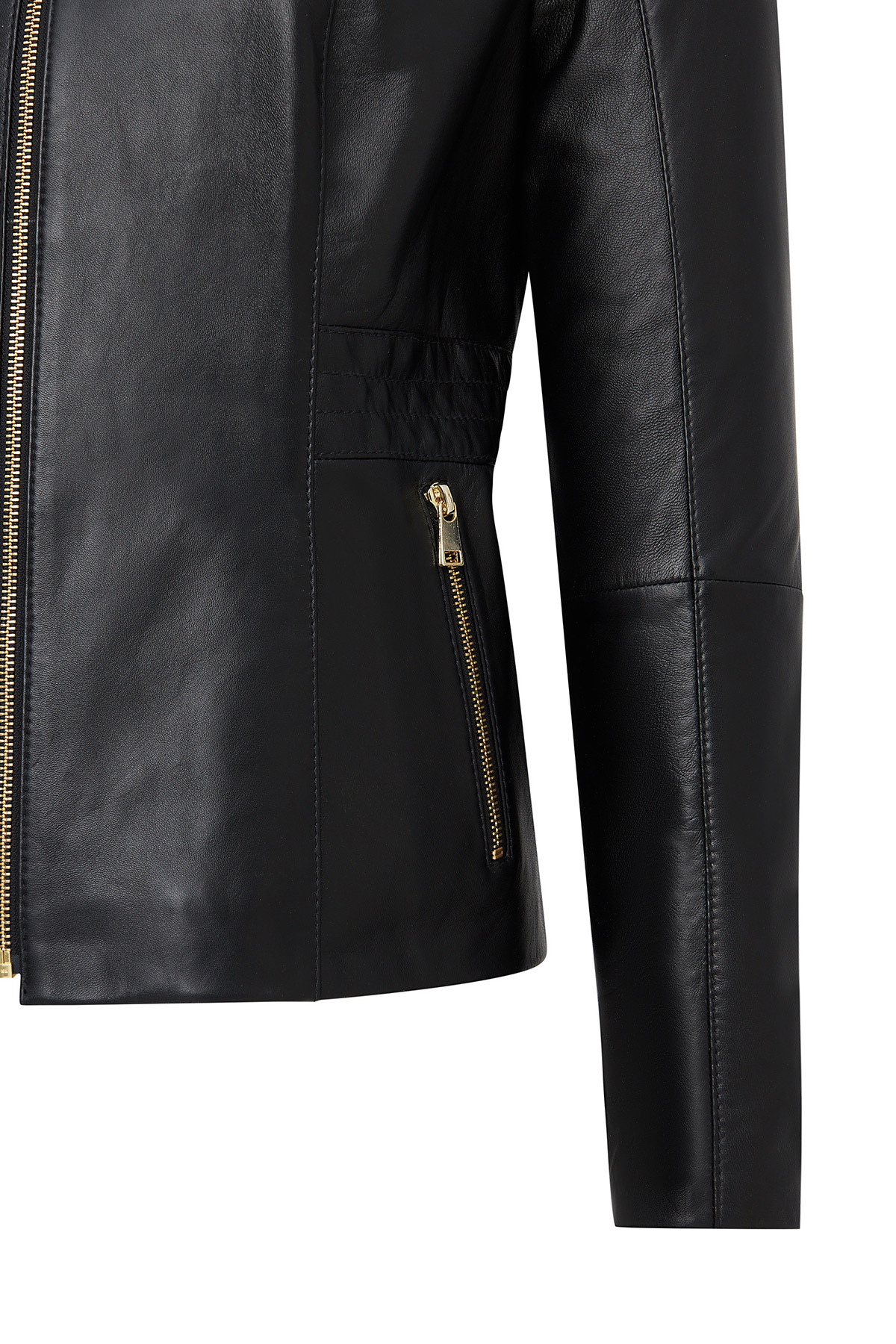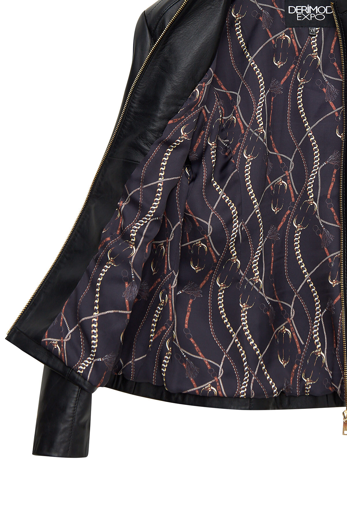 کاپشن چرمی زنانه مشکی زیپ‌دار گشاد لیدیا (پلاس) دارای پوست گوسفند است.