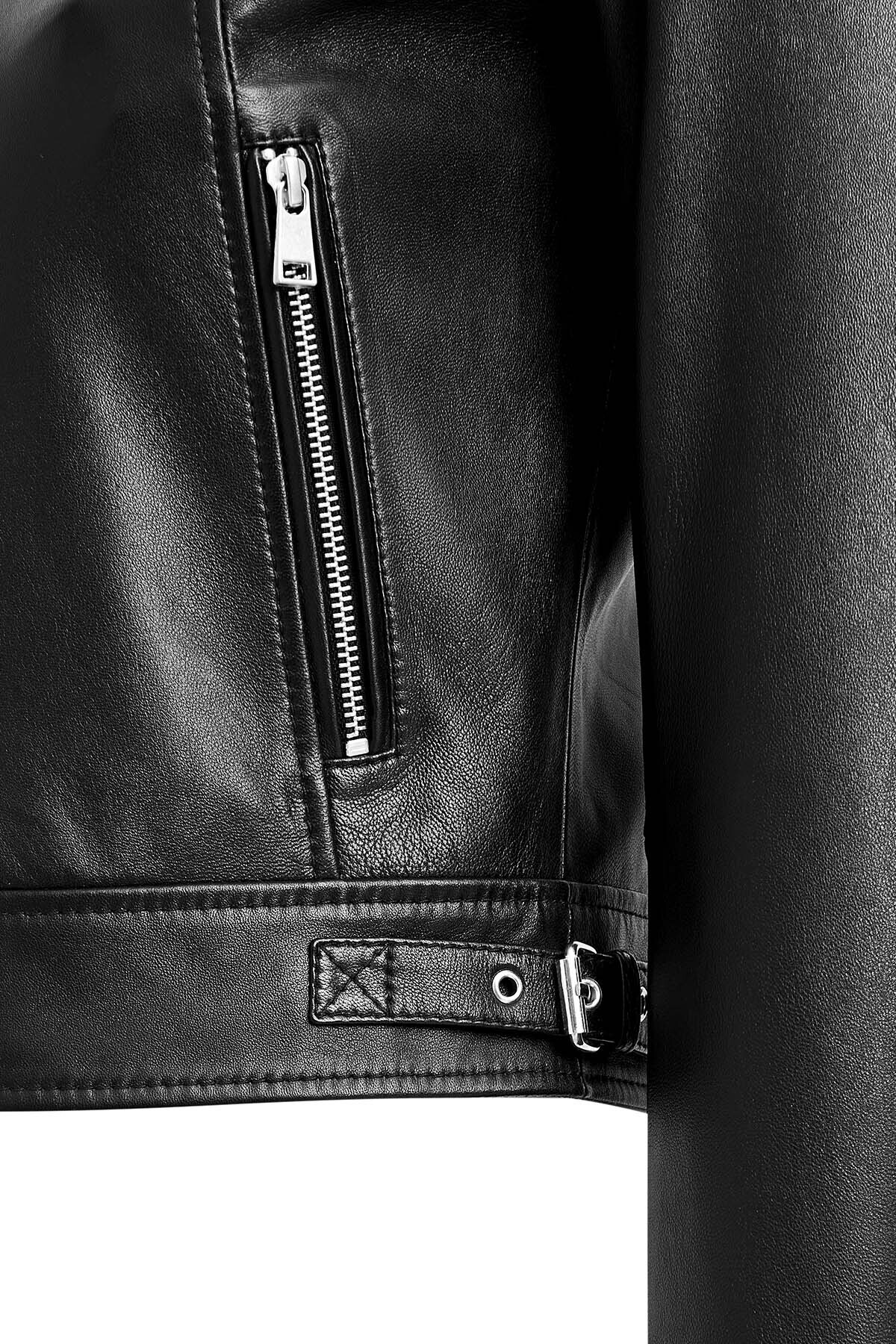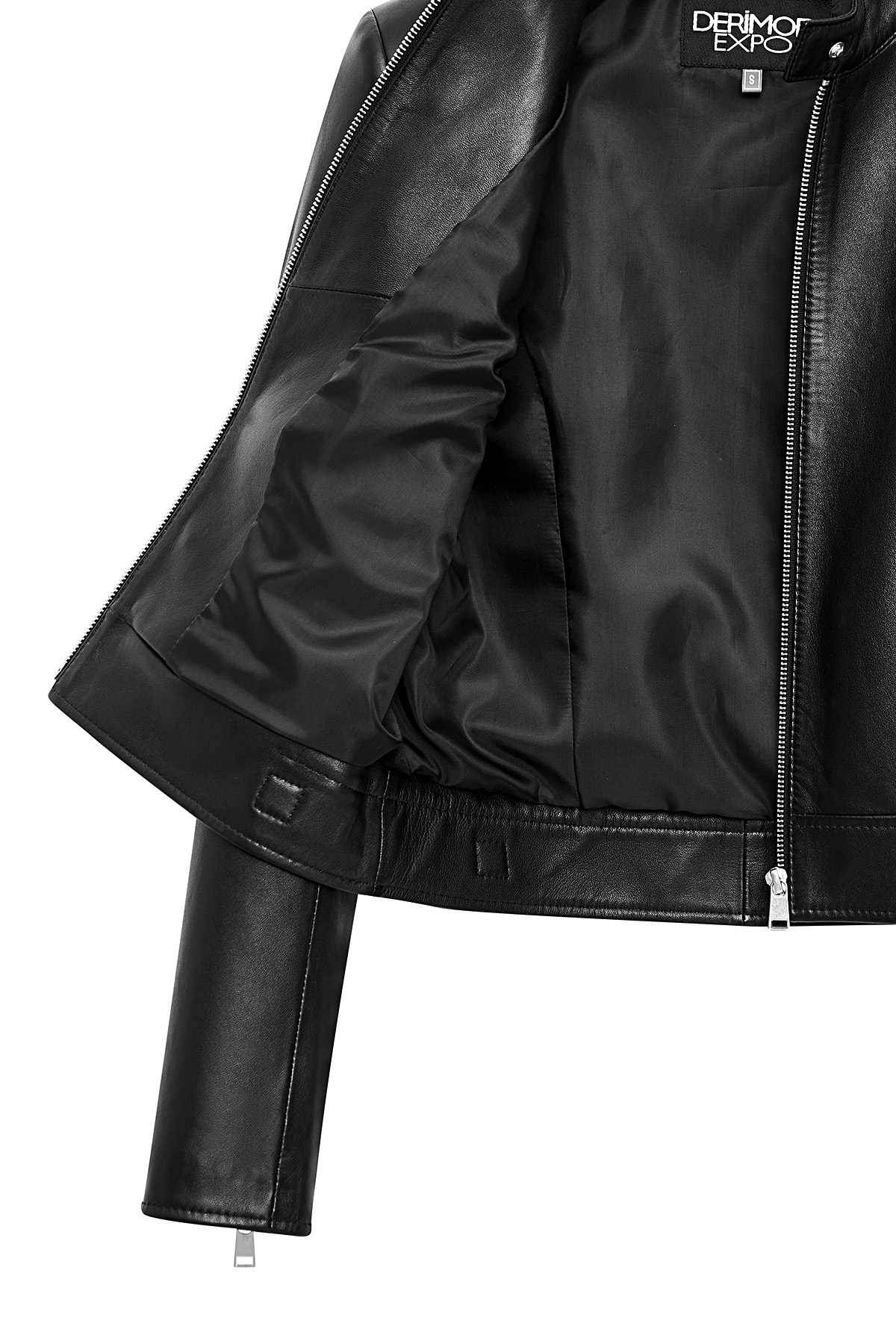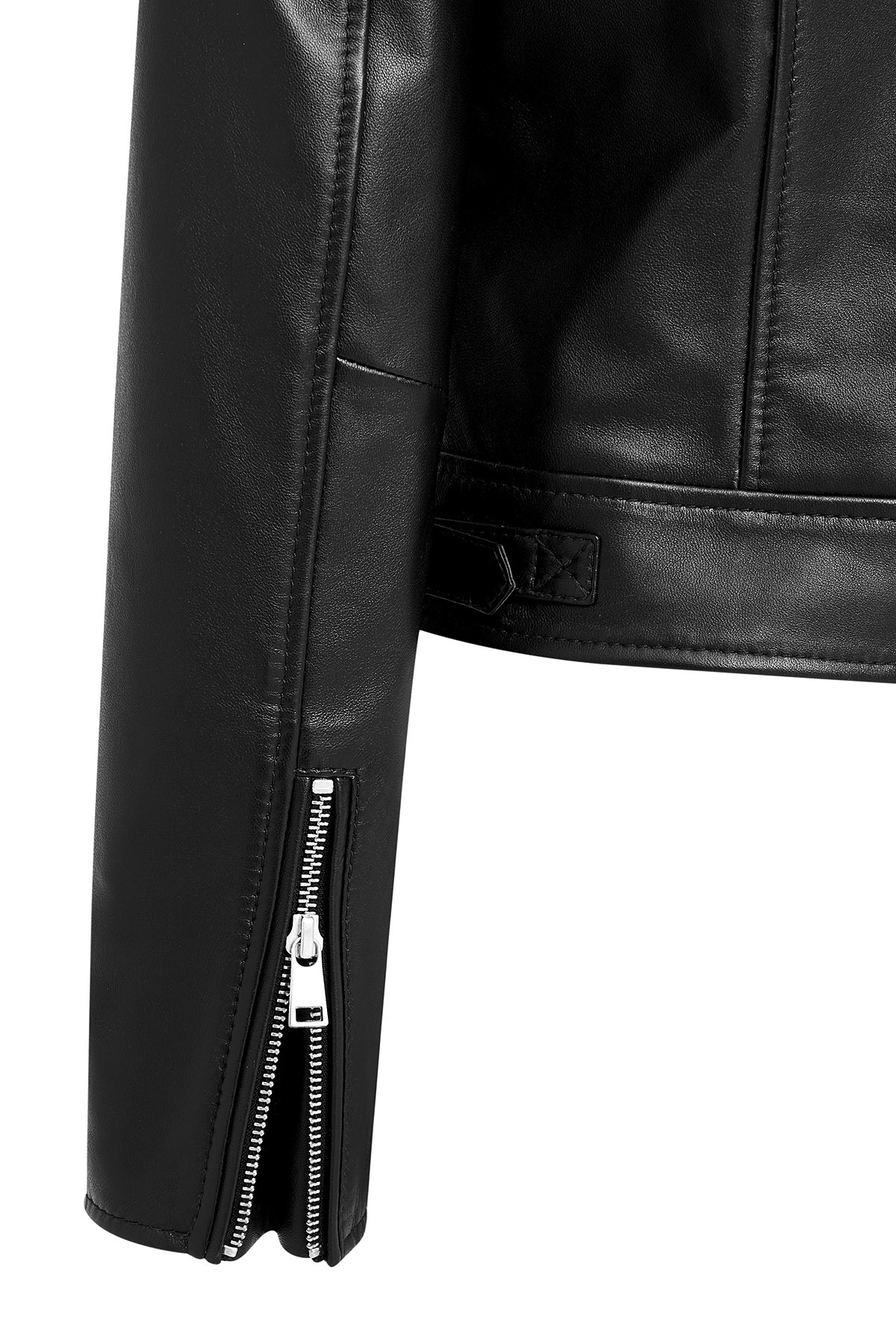 کاپشن چرمی کوتاه مشکی زنانه میسی دارای پوست گوسفند است.