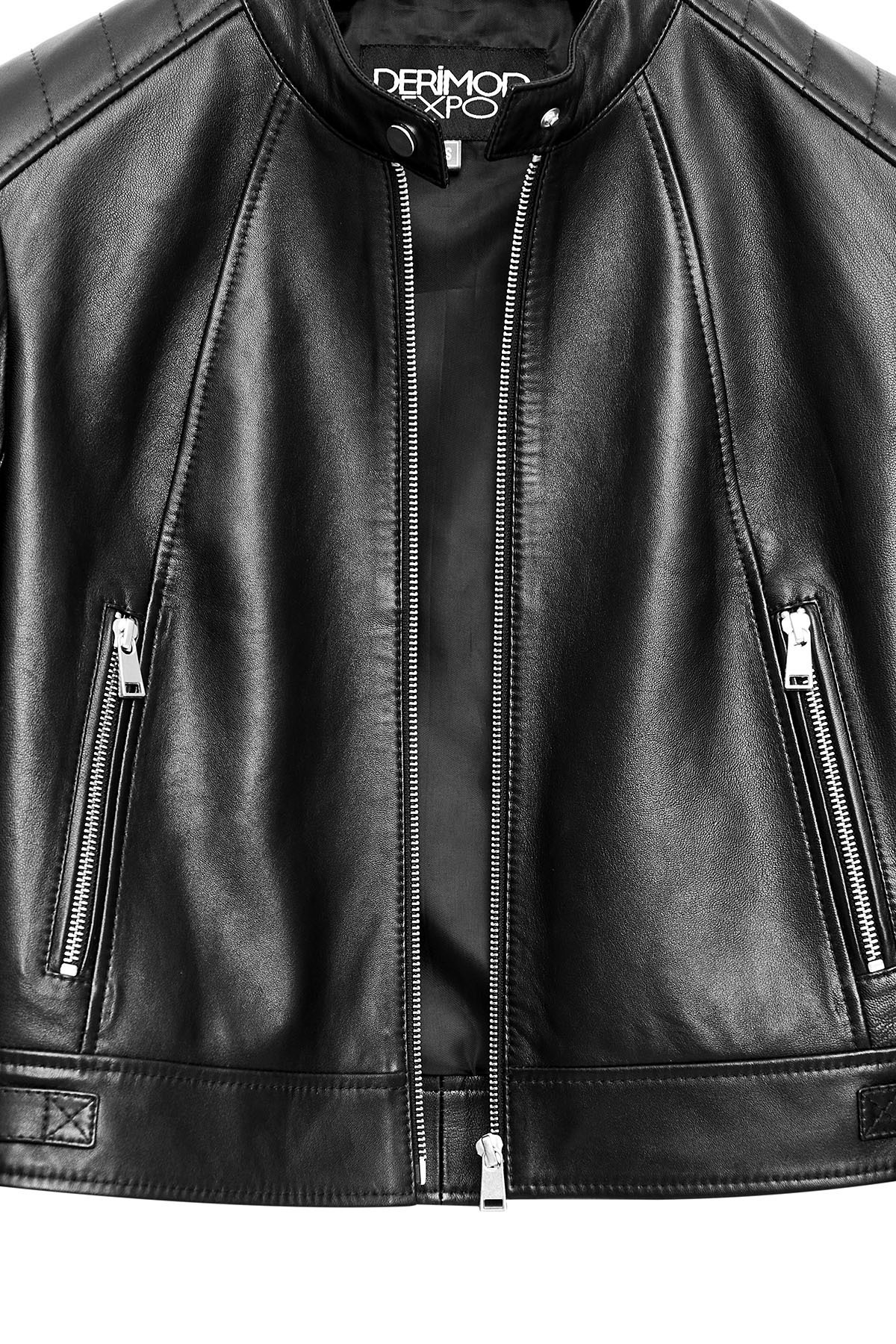کاپشن چرم زنانه مشکی کوتاه میسی مدل 25SGE53081M