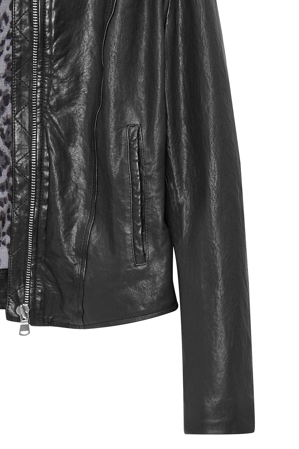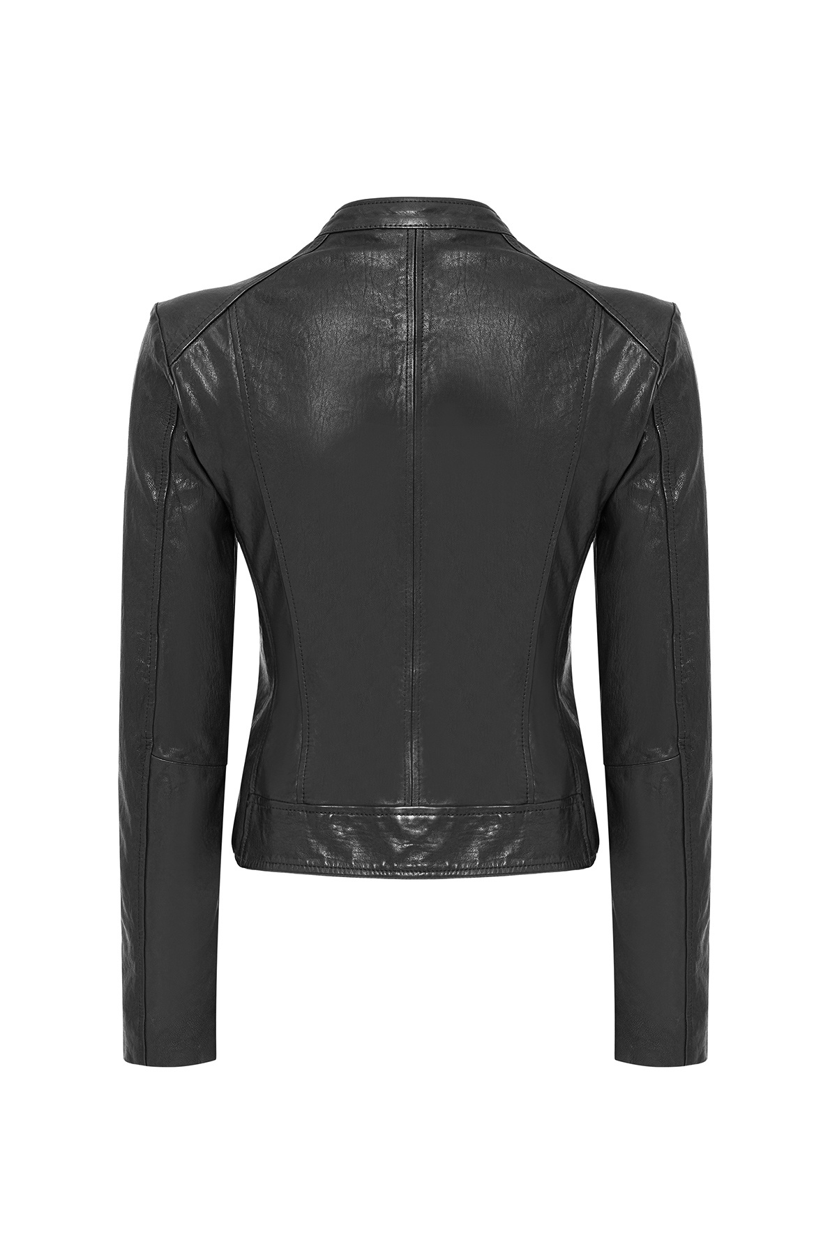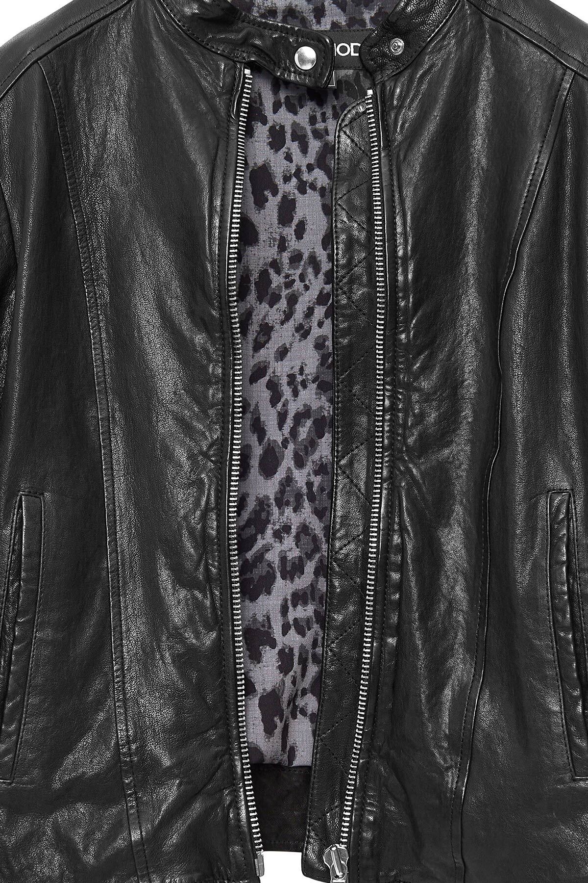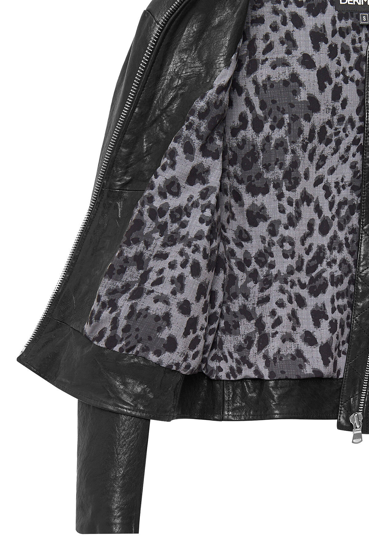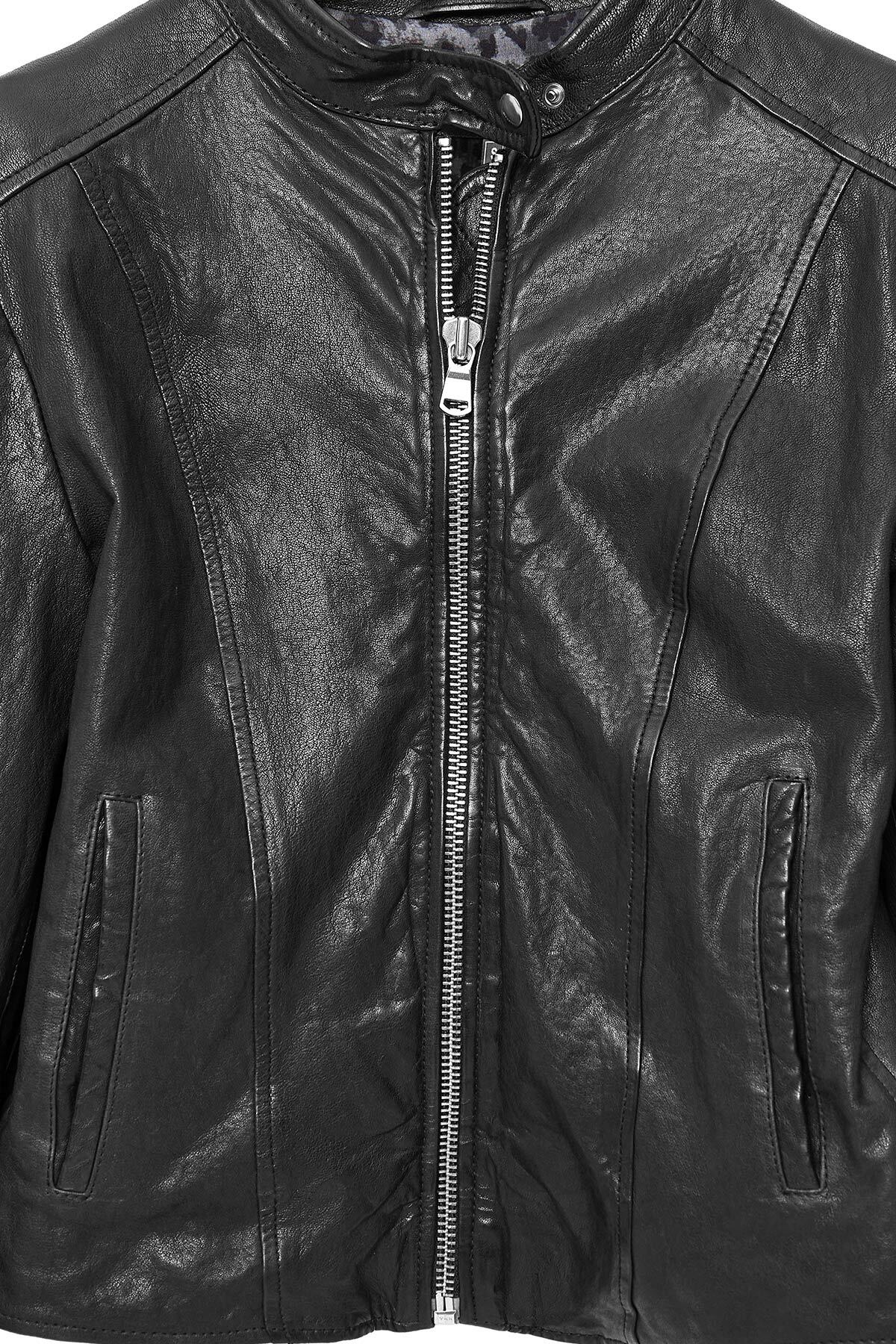 کاپشن چرم کوتاه مشکی زنانه Escape دارای پوست گوسفند است.