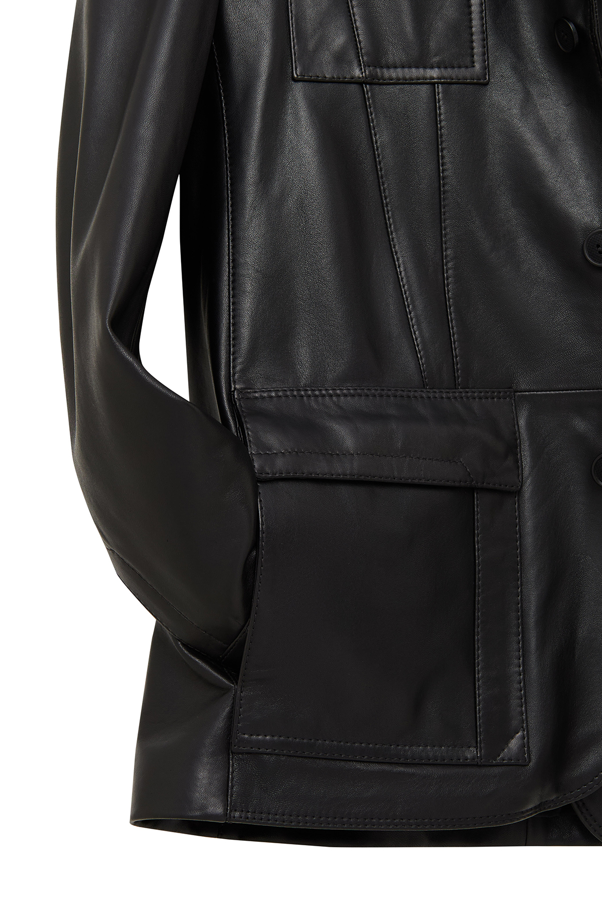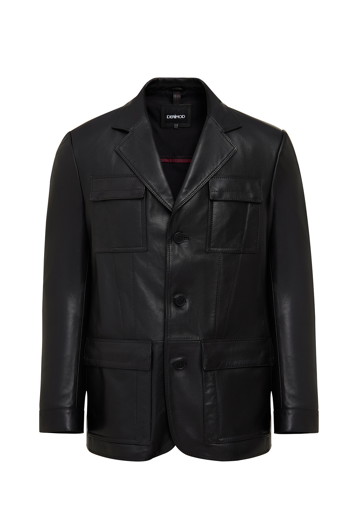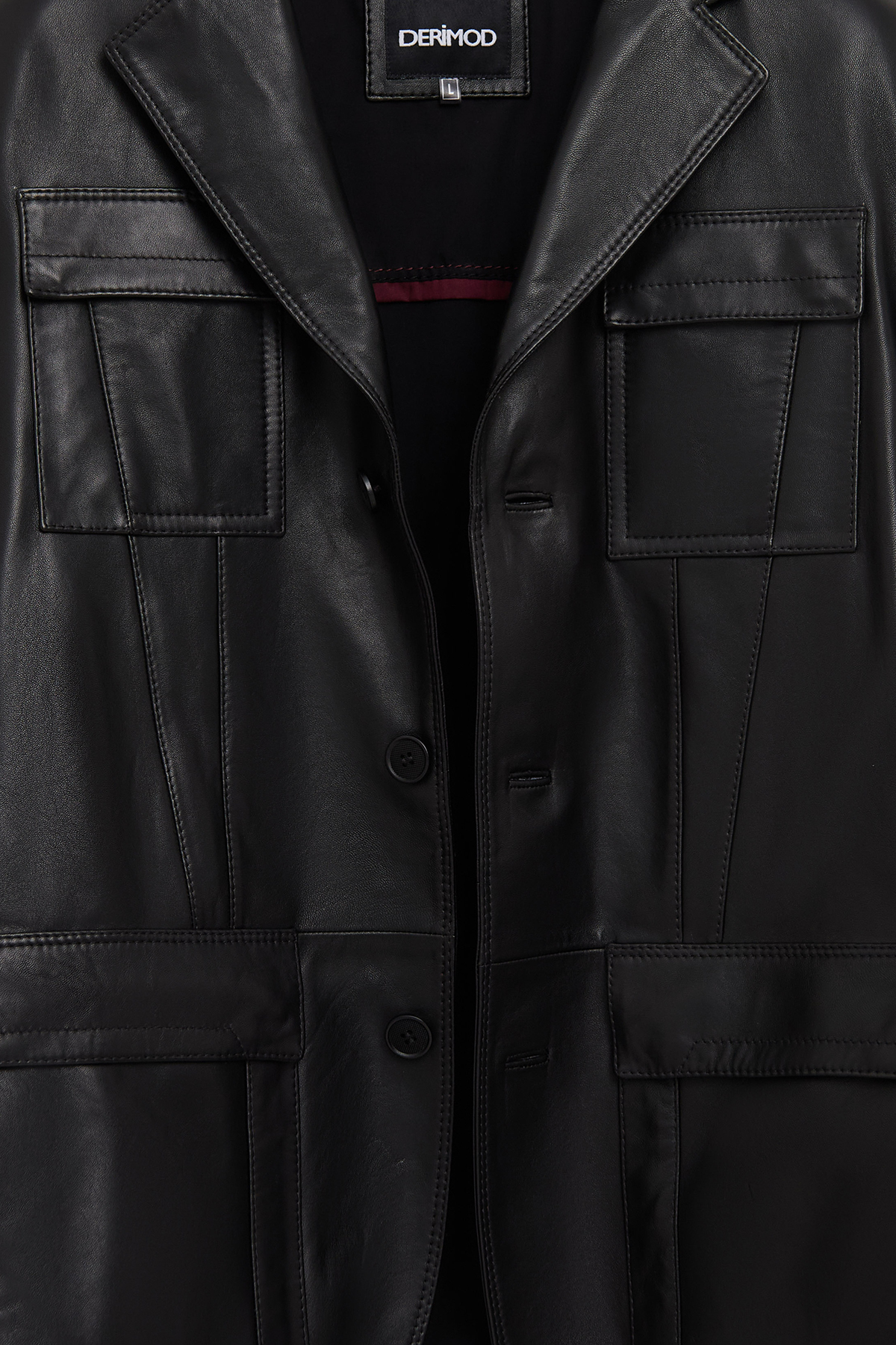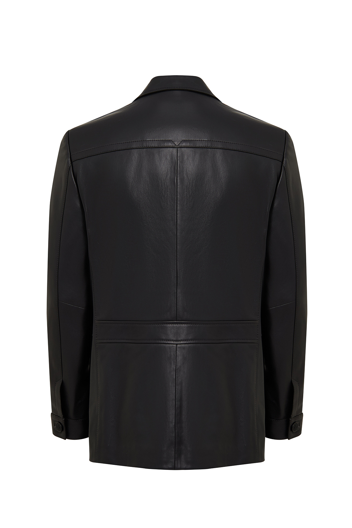 کاپشن چرمی مردانه مشکی دکمهدار کین، دارای پوست گوسفند است.