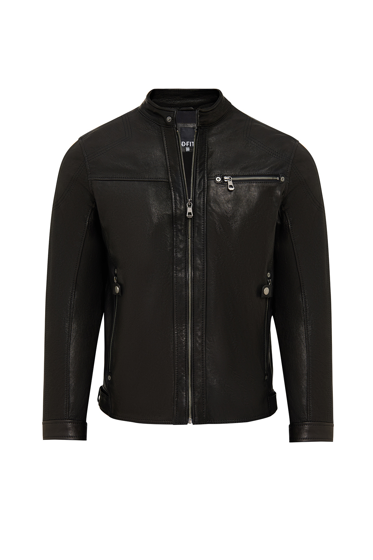 کاپشن چرم کوتاه مردانه مشکی طرح اسلیم فیت مدل Towns دارای پوست گوسفند است.