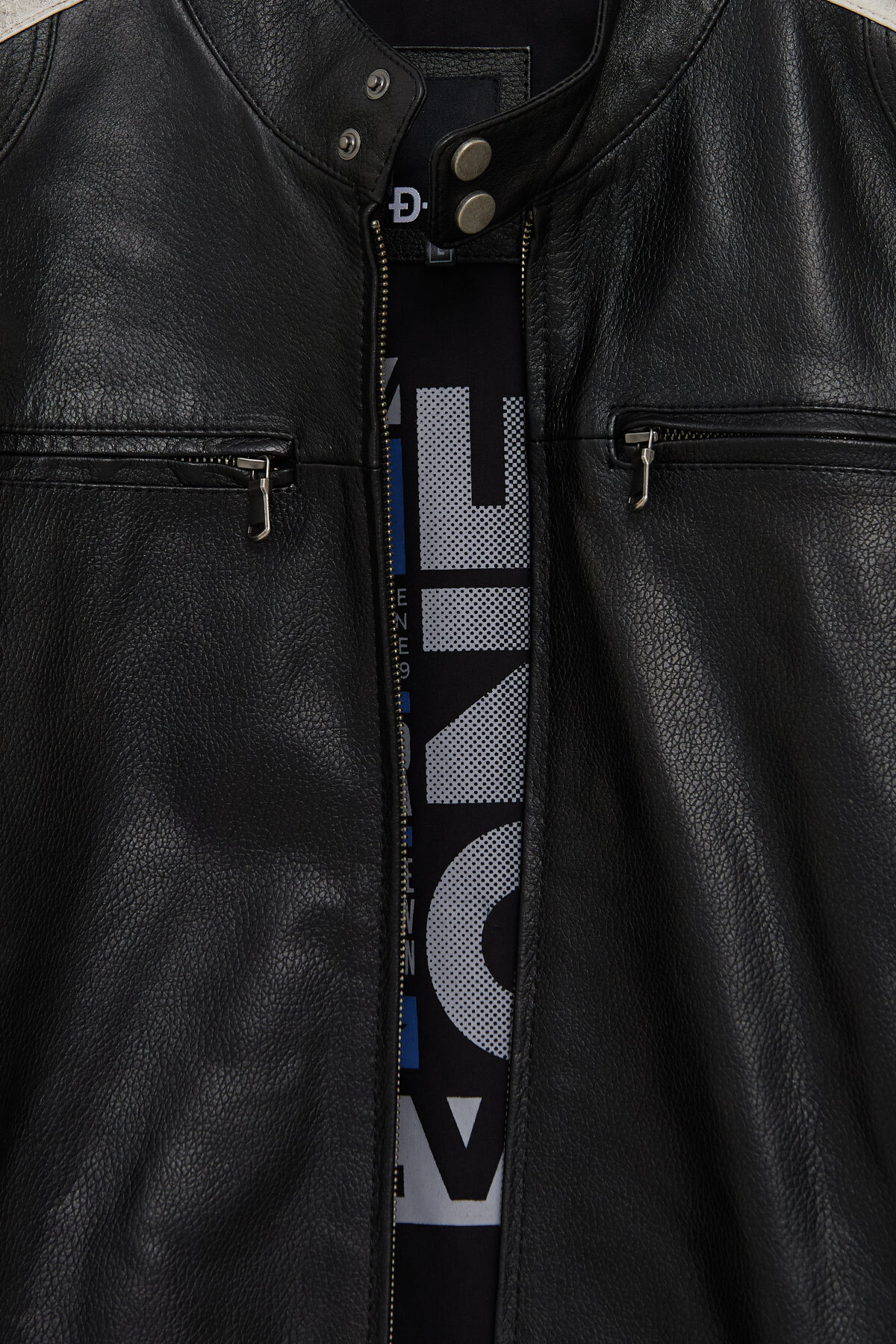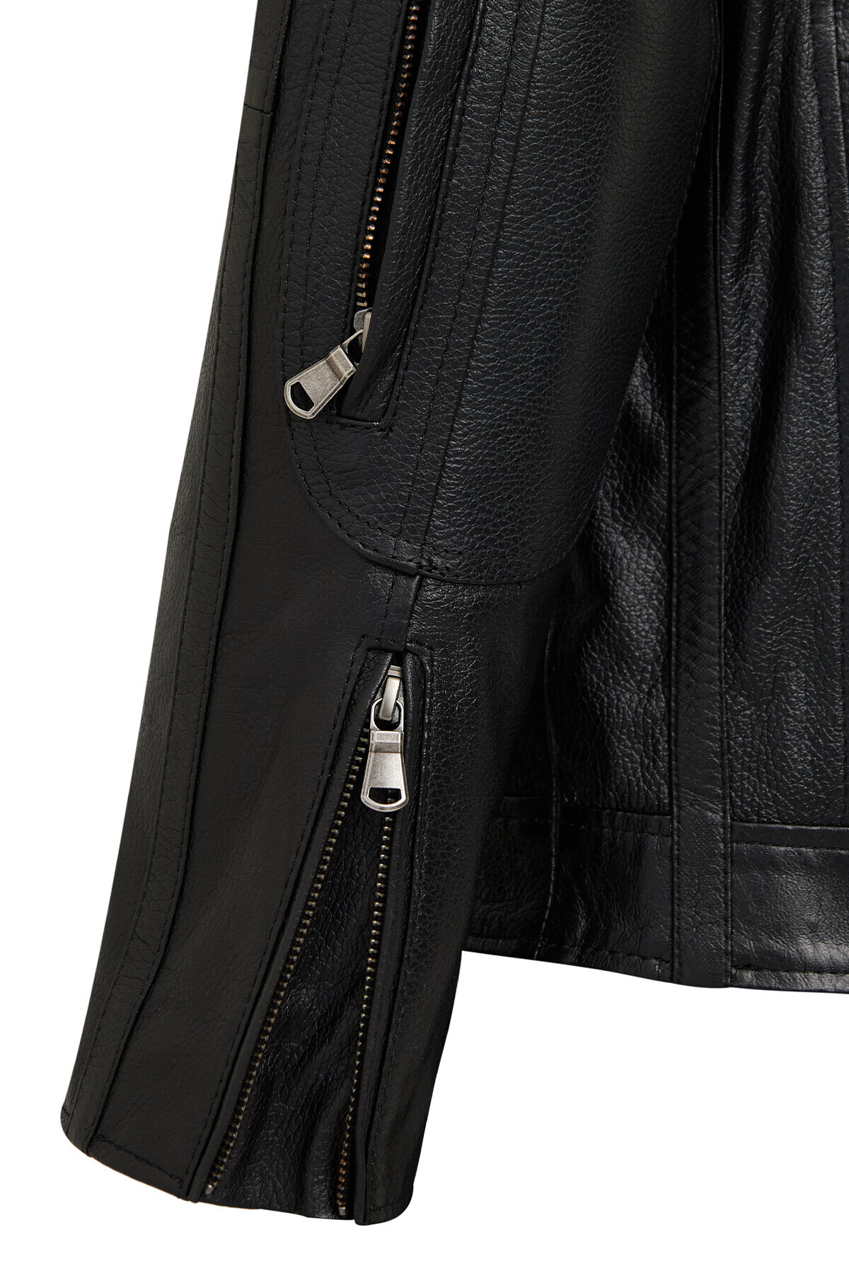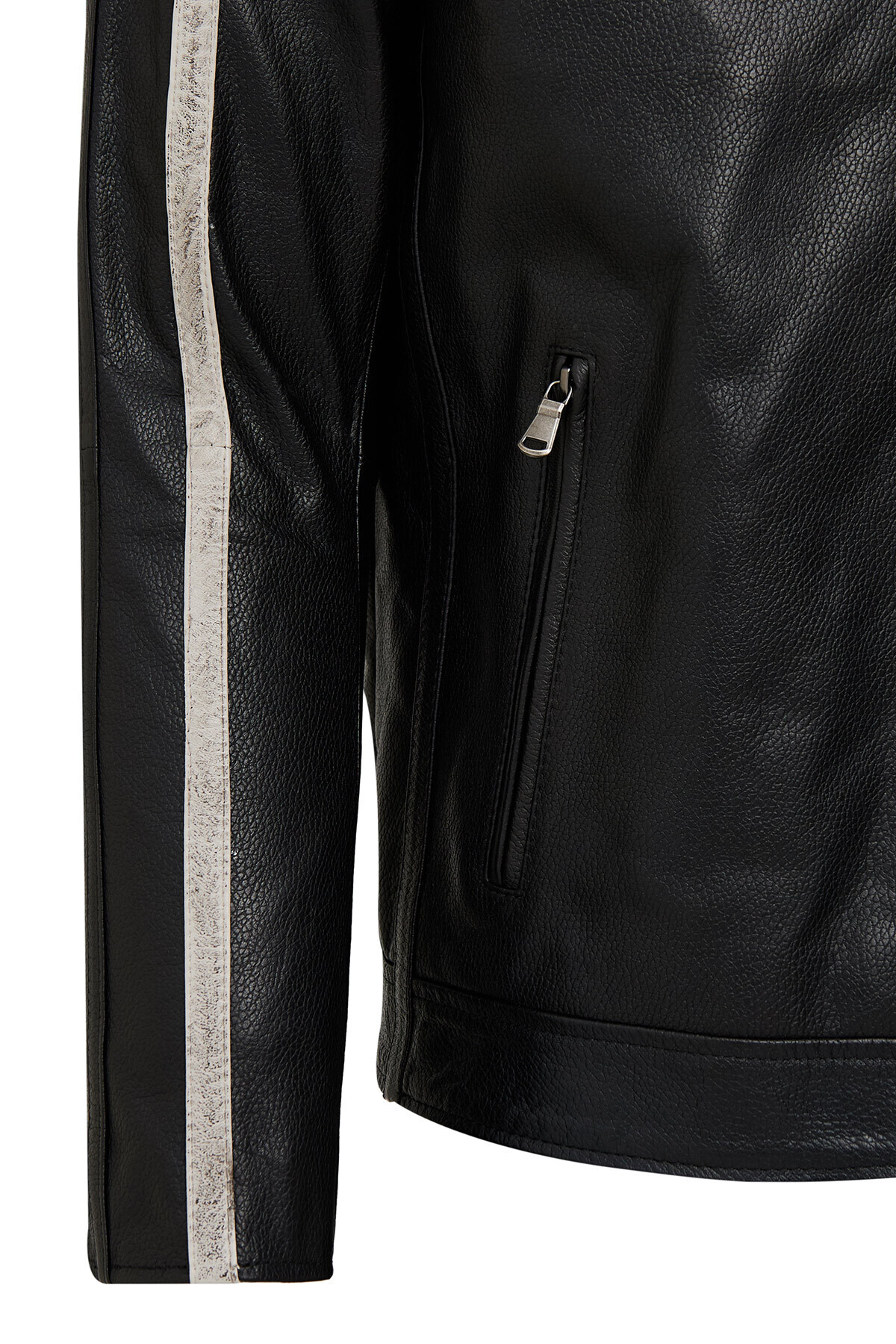 کاپشن چرم کوتاه مردانه مشکی اسلیم فیت میدلتون دارای پوست گوسفند است.