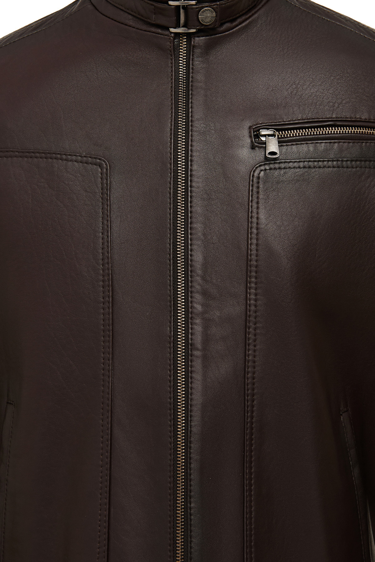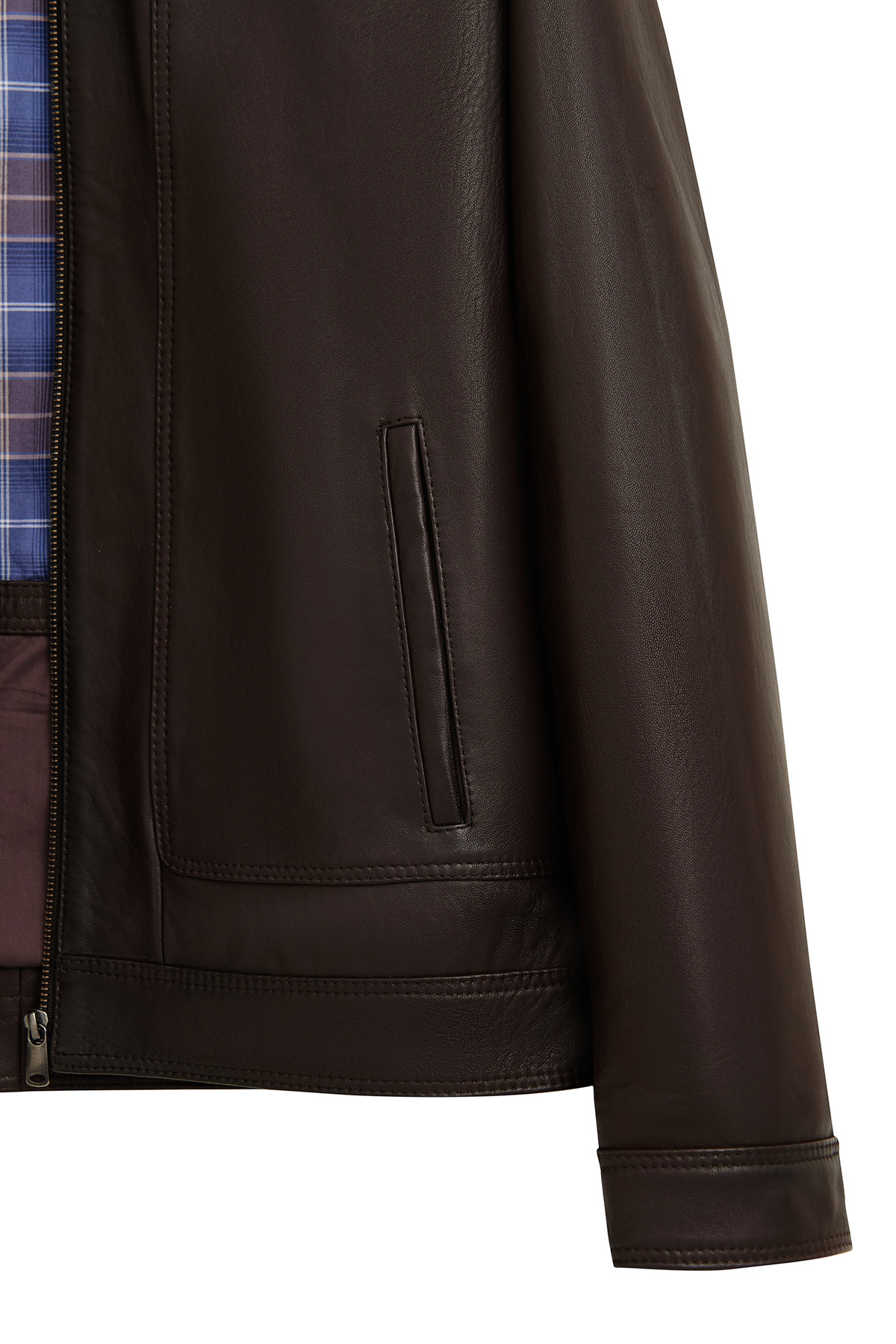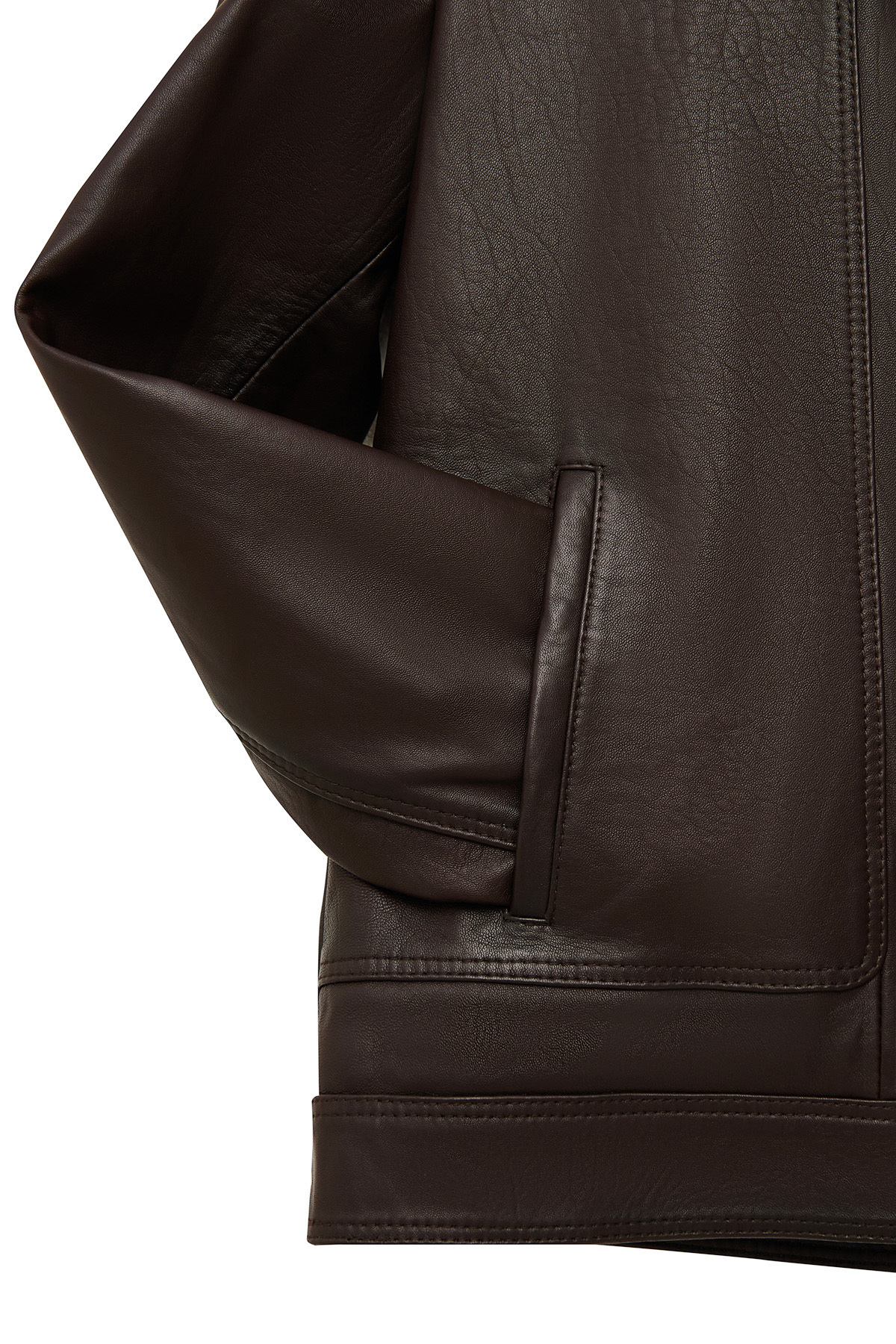 کاپشن چرم قهوهای مردانه Felibe دارای پوست گوسفند است.