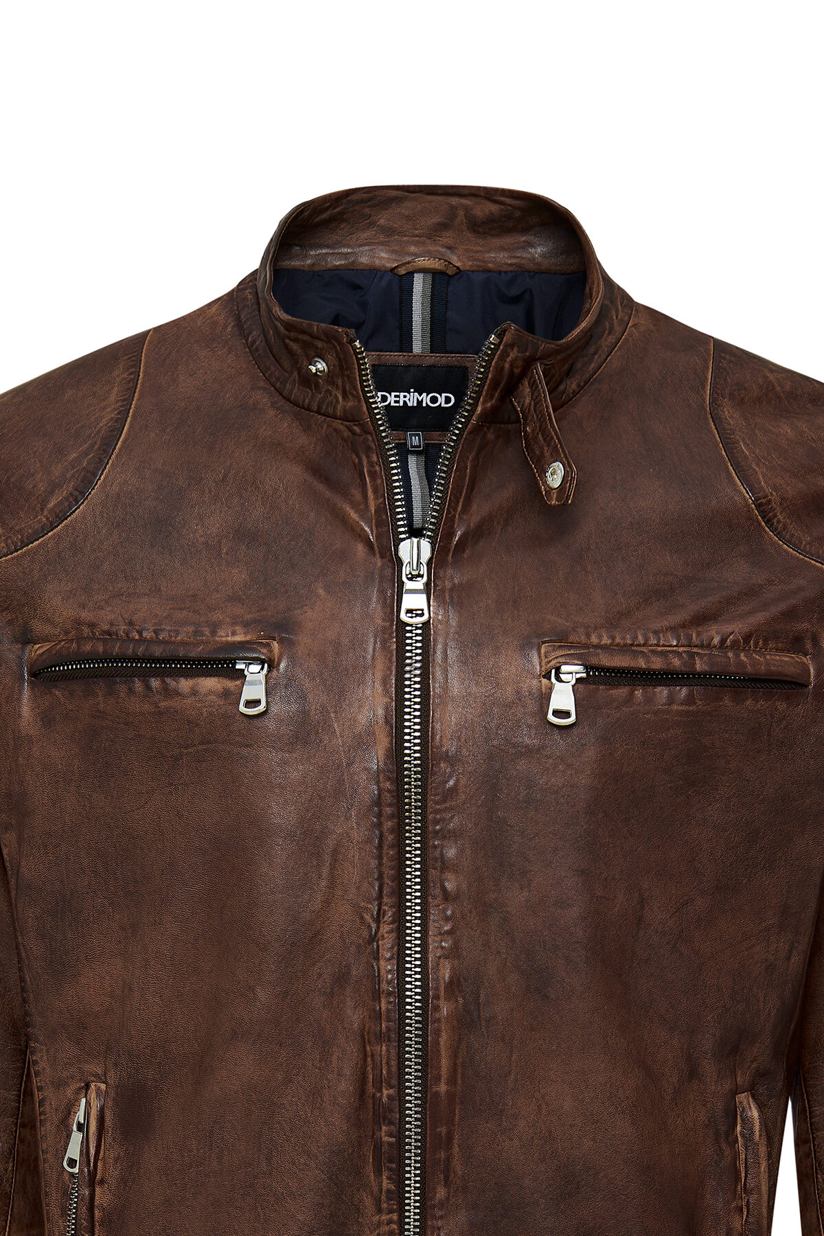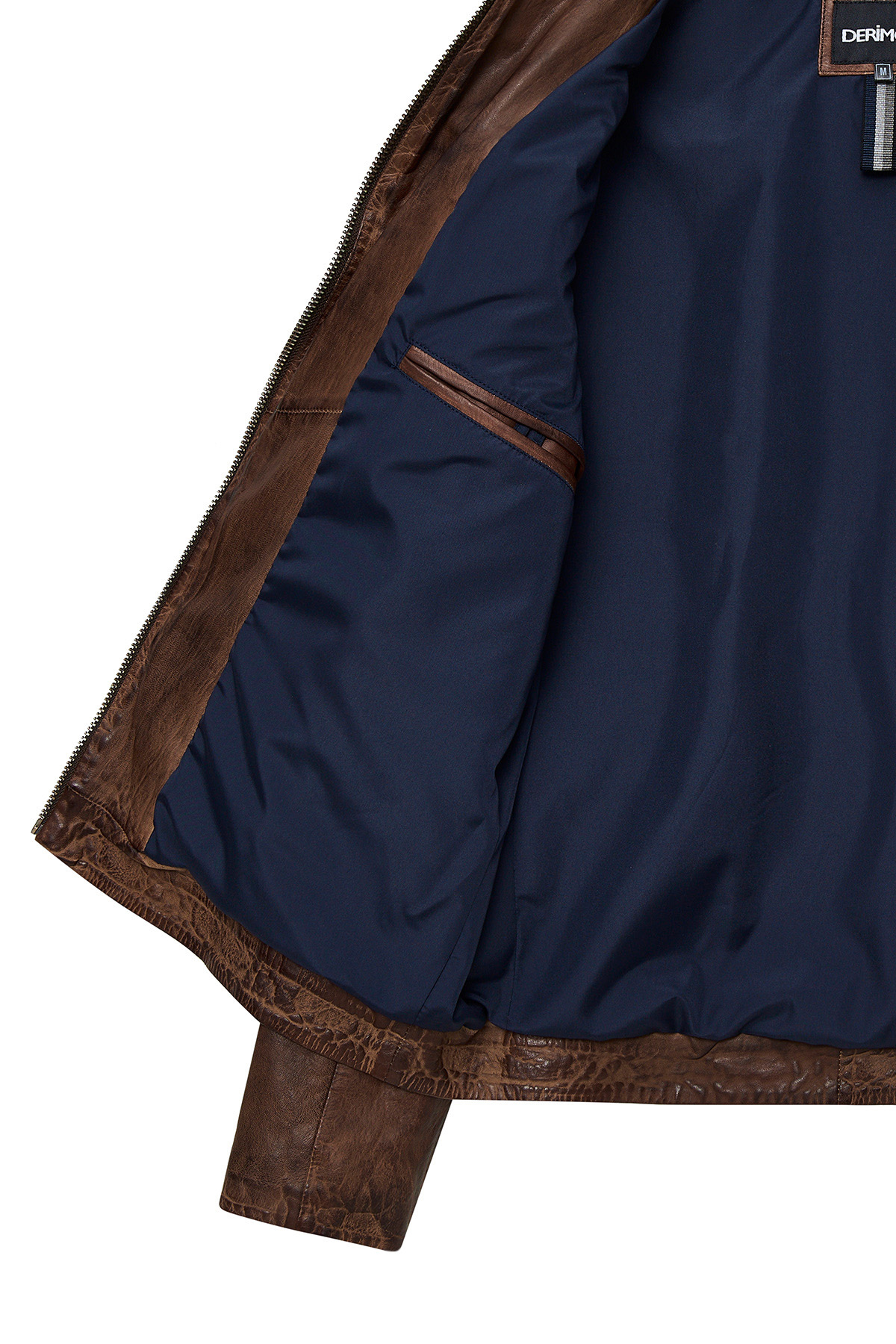 کاپشن چرمی اسپرت مردانه قهوهای Immobile دارای پوست گوسفند است.