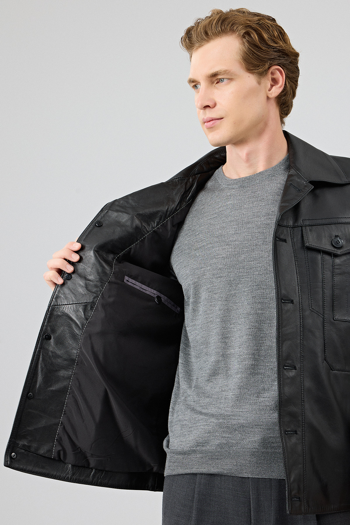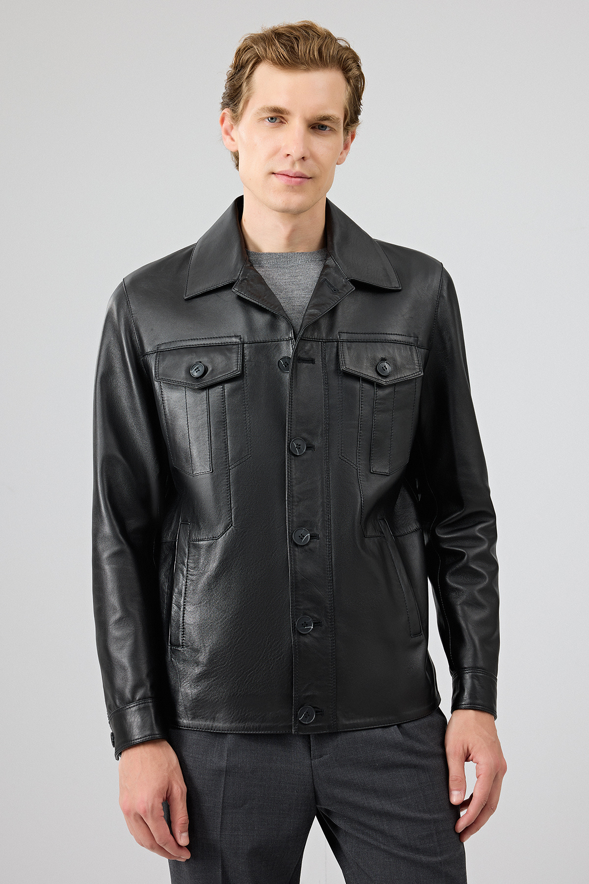 کاپشن چرمی مشکی مردانه Axel دارای پوست گوسفند است.