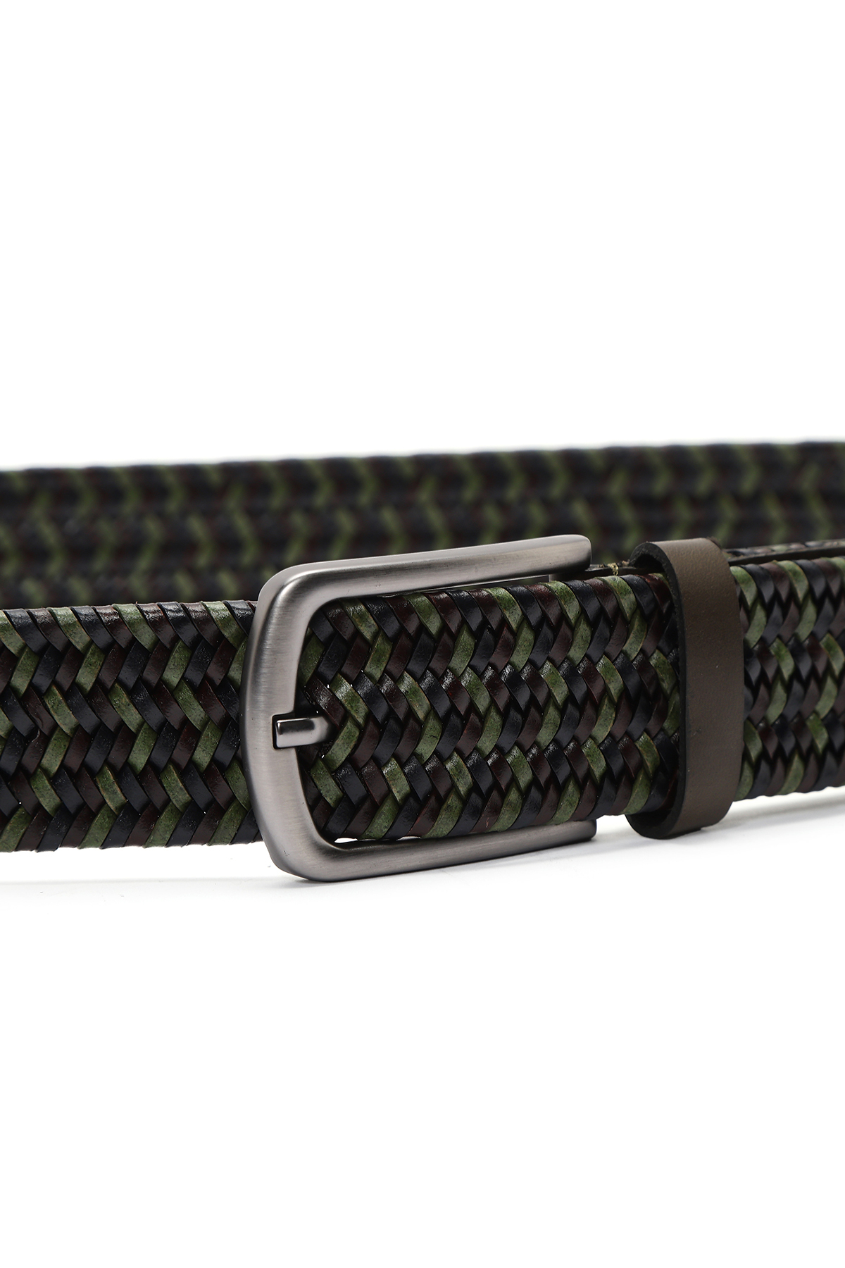کمربند چرمی مردانه بافته شده سبز 000A2D1304429