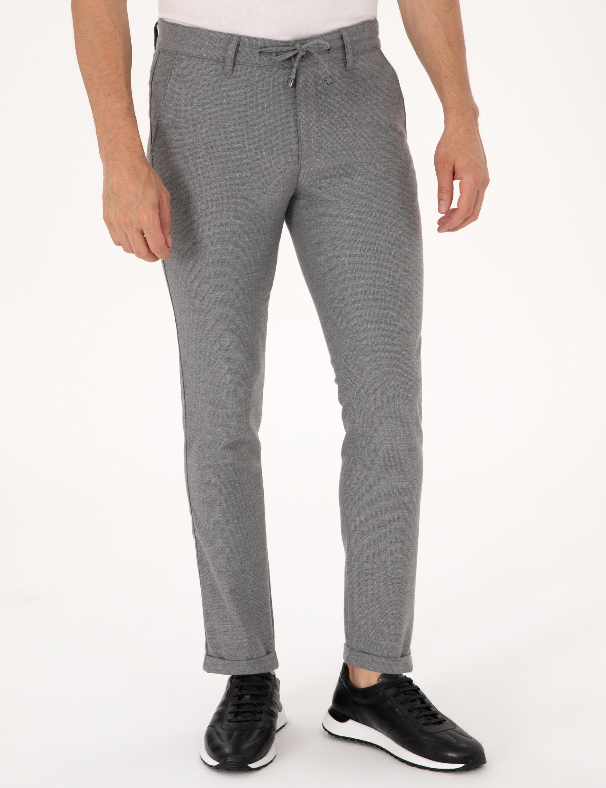 شلوار کانواس بند دار اسلیم فیت خاکستری پیرکاردین