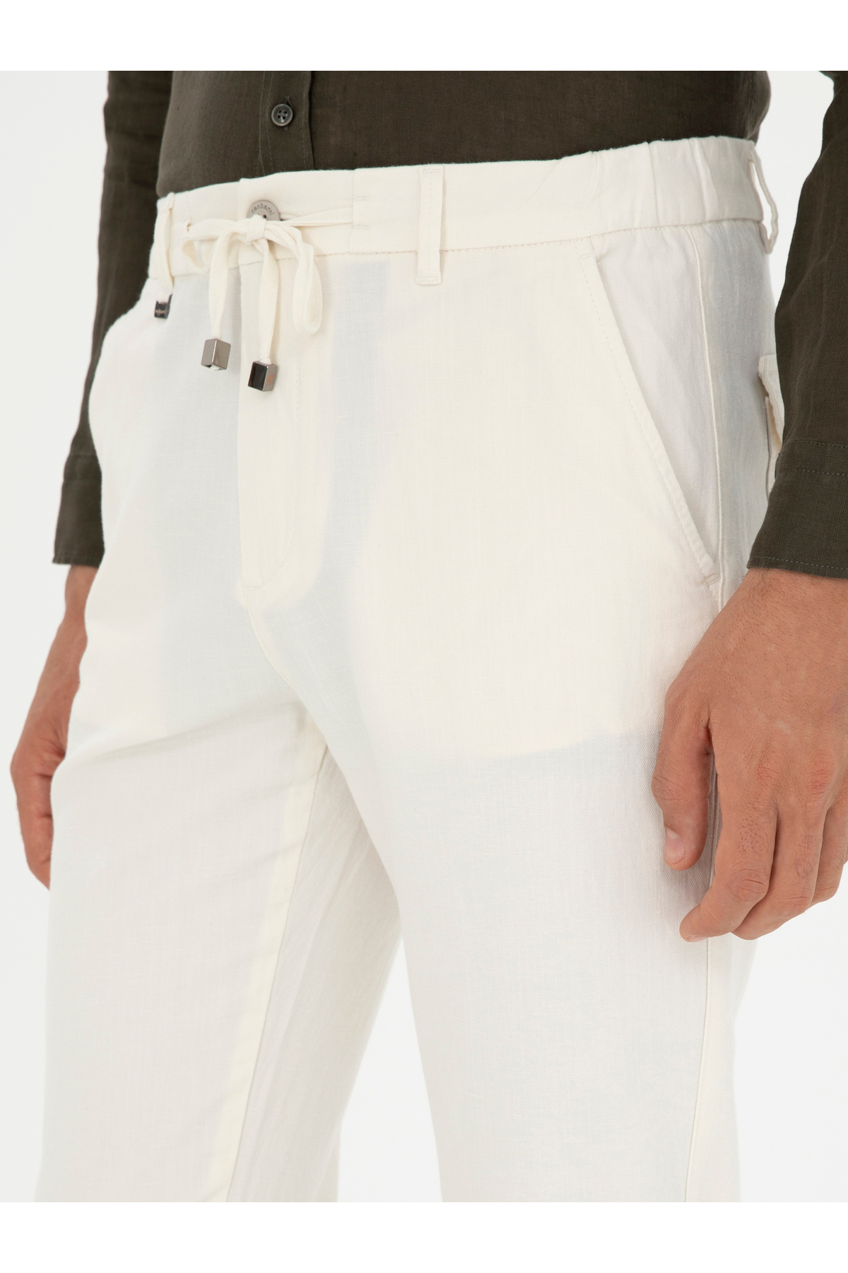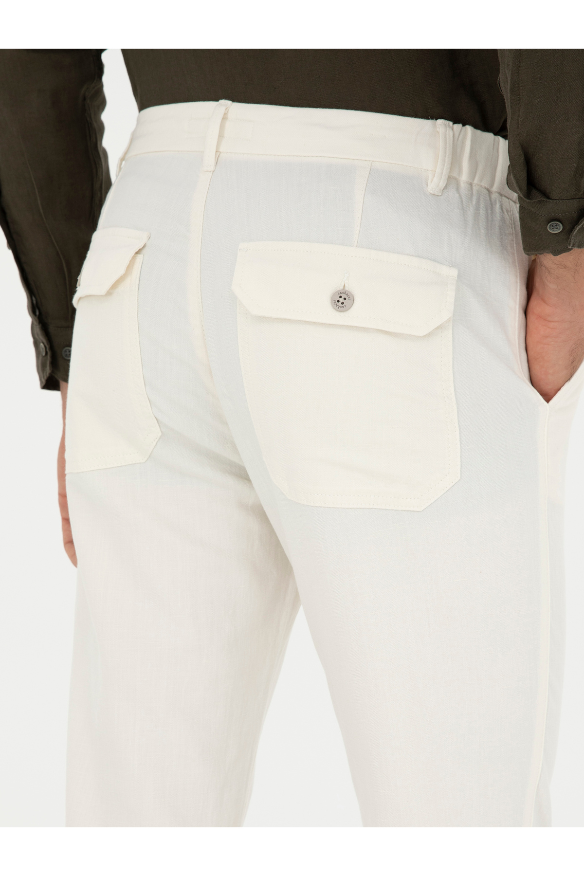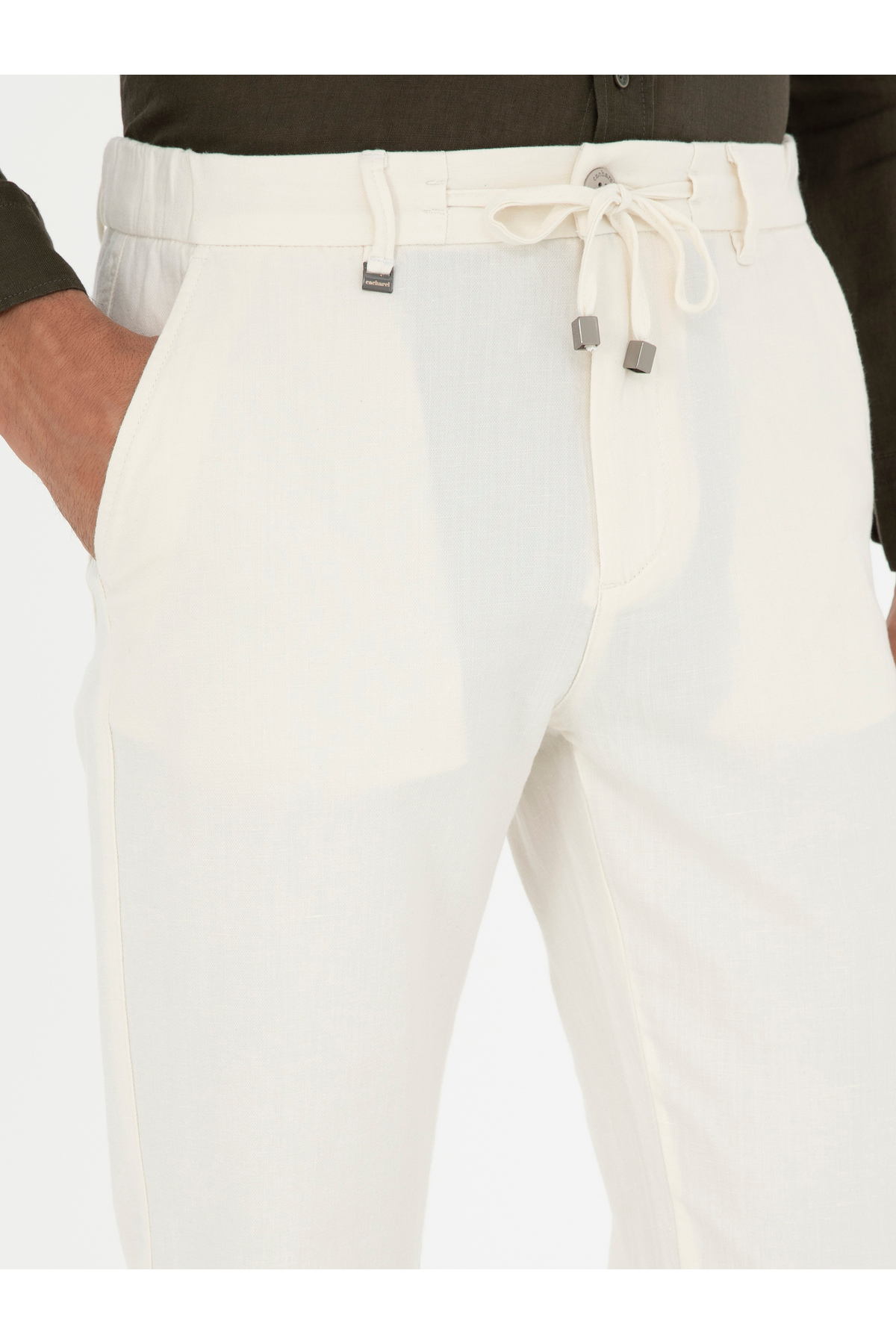شلوار کتان طرح هویج سفید مایل به کرم برند کاشارل کد:(50285371-VR019)
