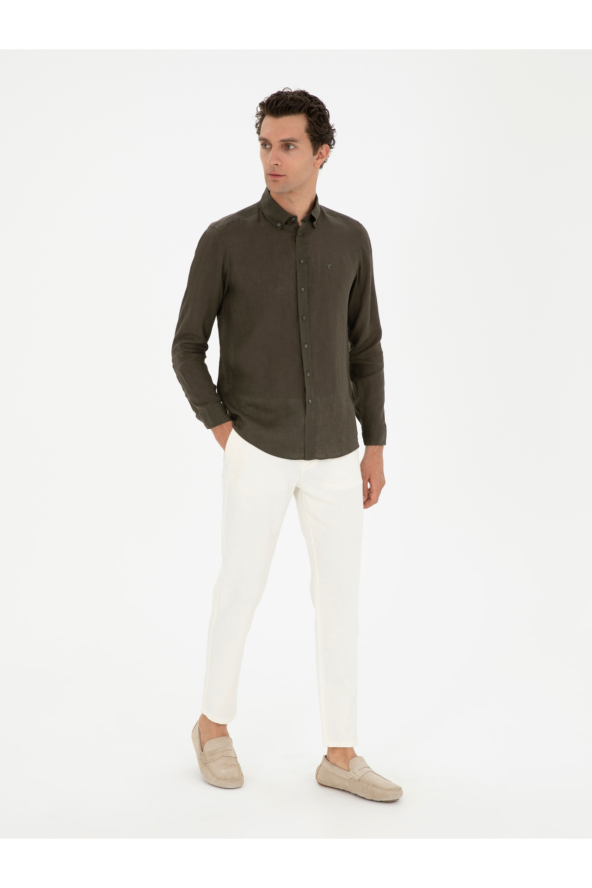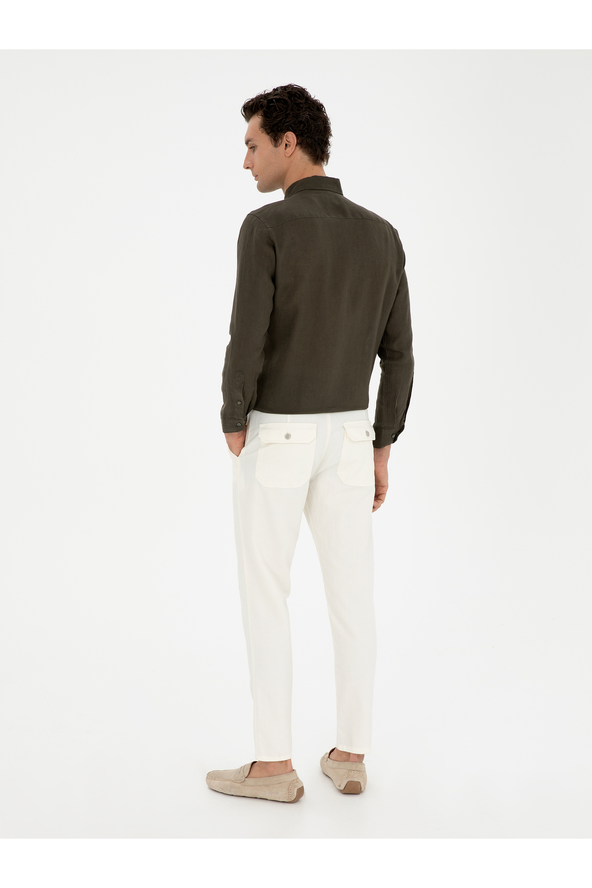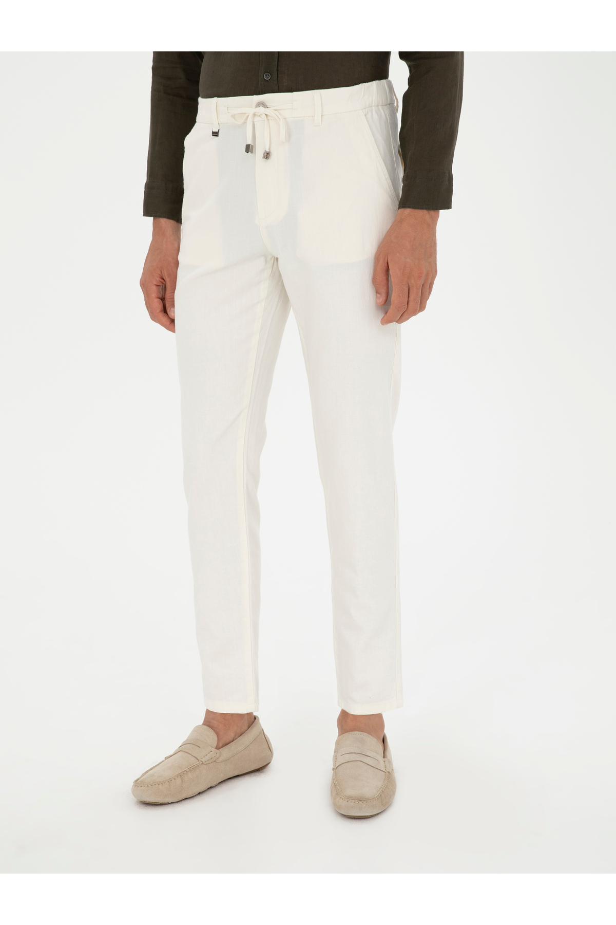 شلوار کتان طرح هویج سفید مایل به کرم برند کاشارل کد:(50285371-VR019)