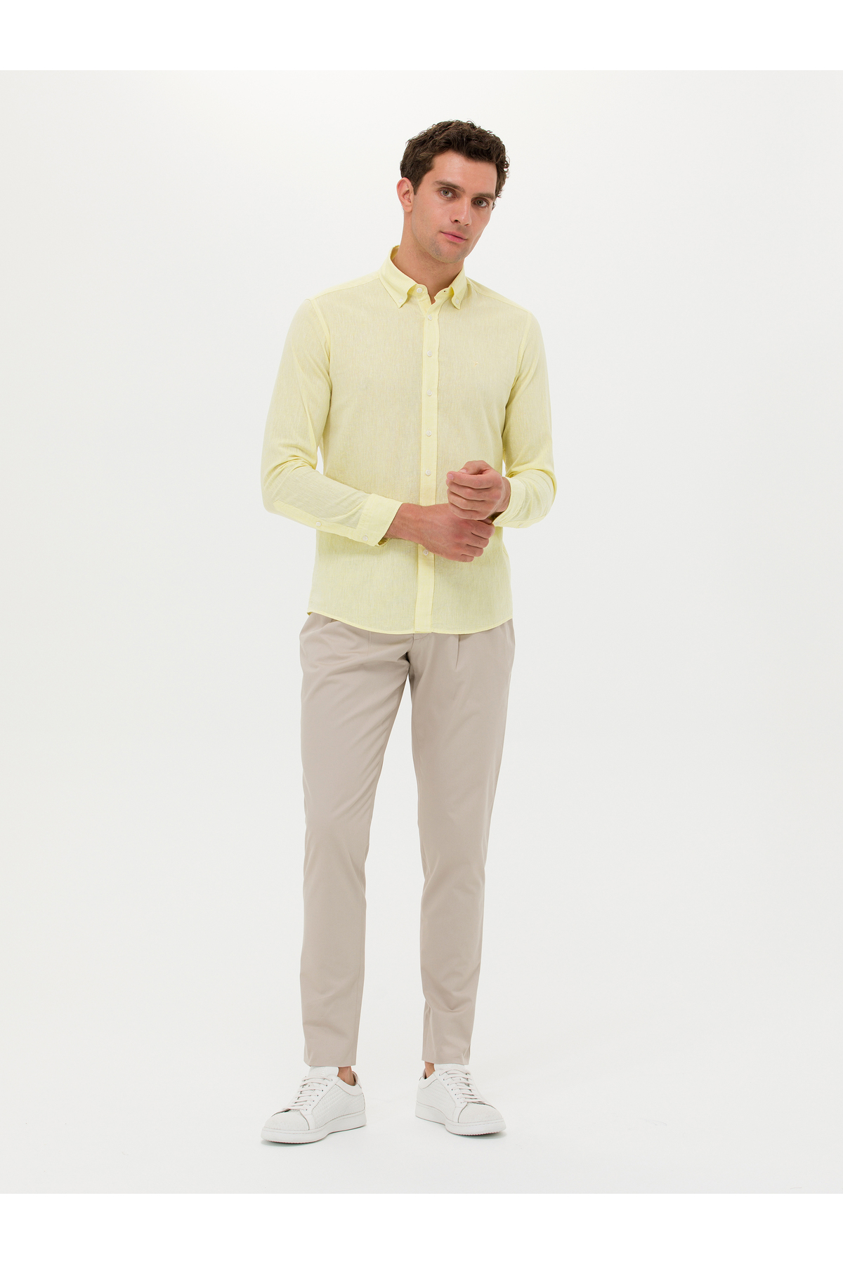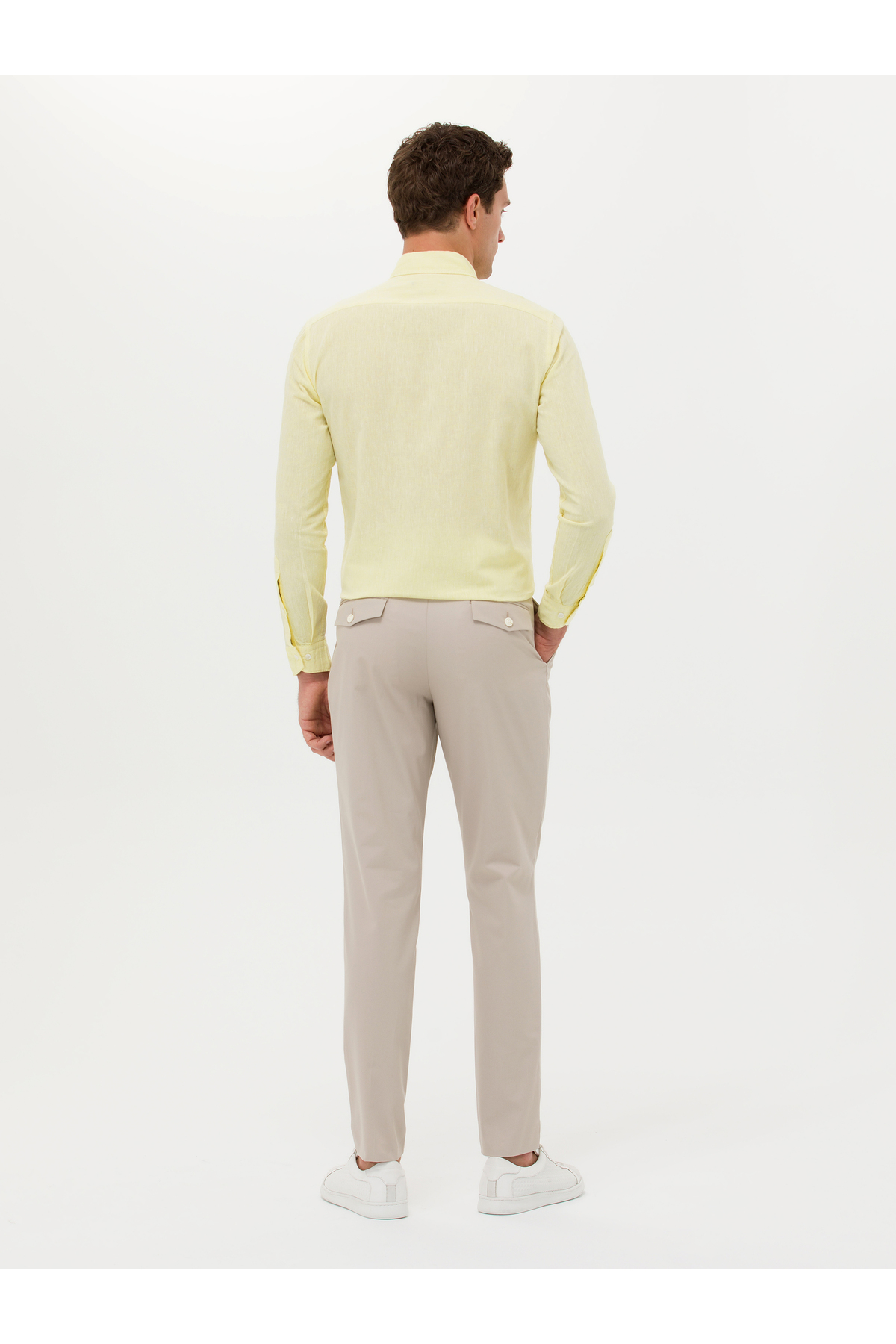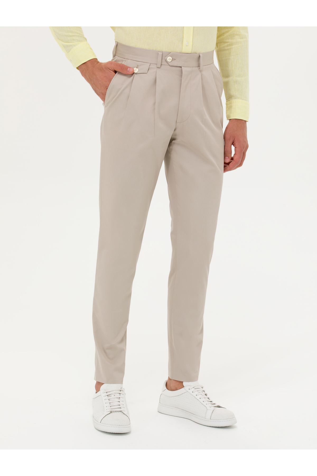 شلوار پارچهای پلیسهدار ۱۰۰٪ پنبهای بژ Dad Fit برند کاشارل کد:(50265253-VR011)