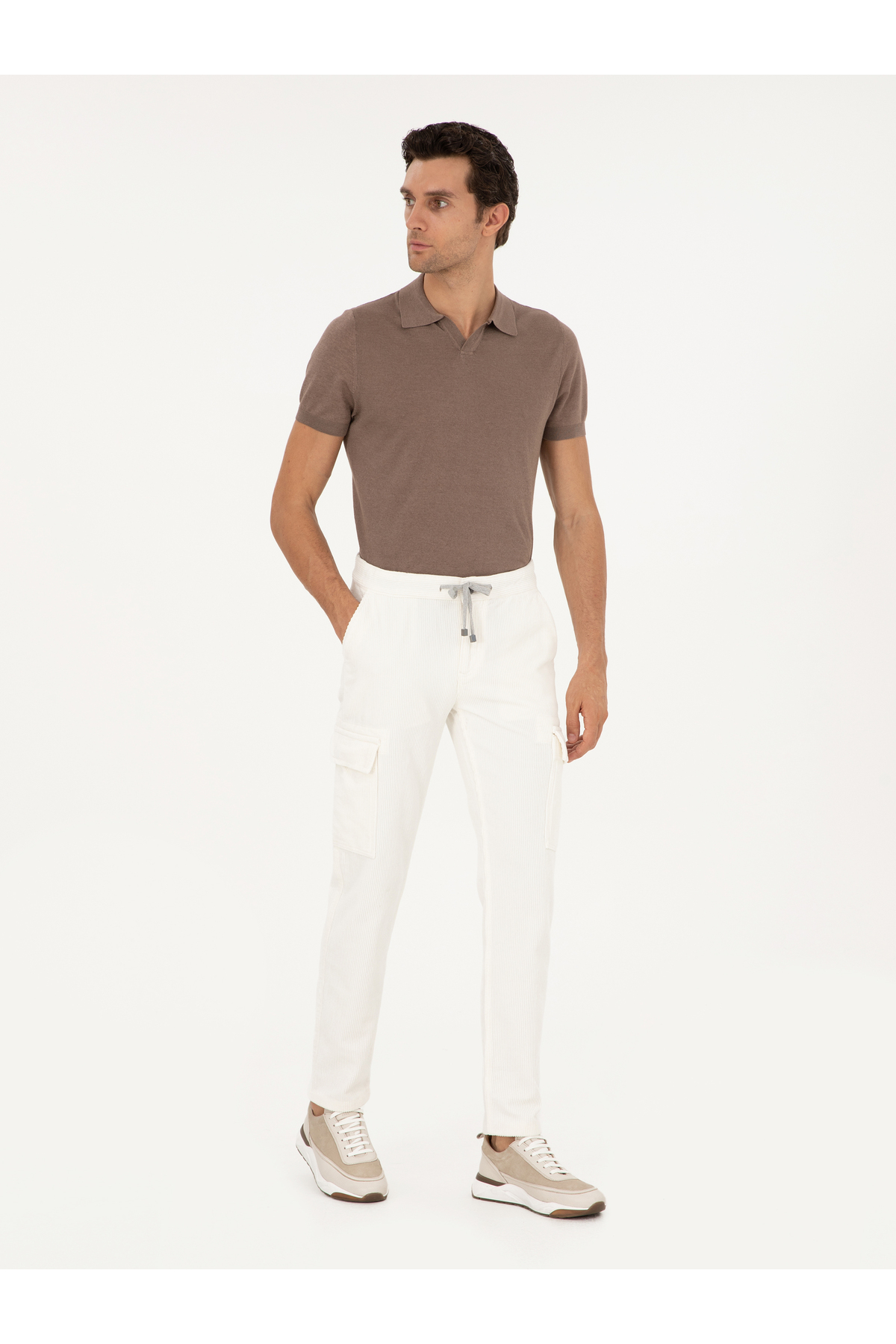 شلوار مخمل راسته سفید جیبدار، جنس برزنت ۱۰۰٪ پنبه برند کاشارل کد:(50294013-VR013)