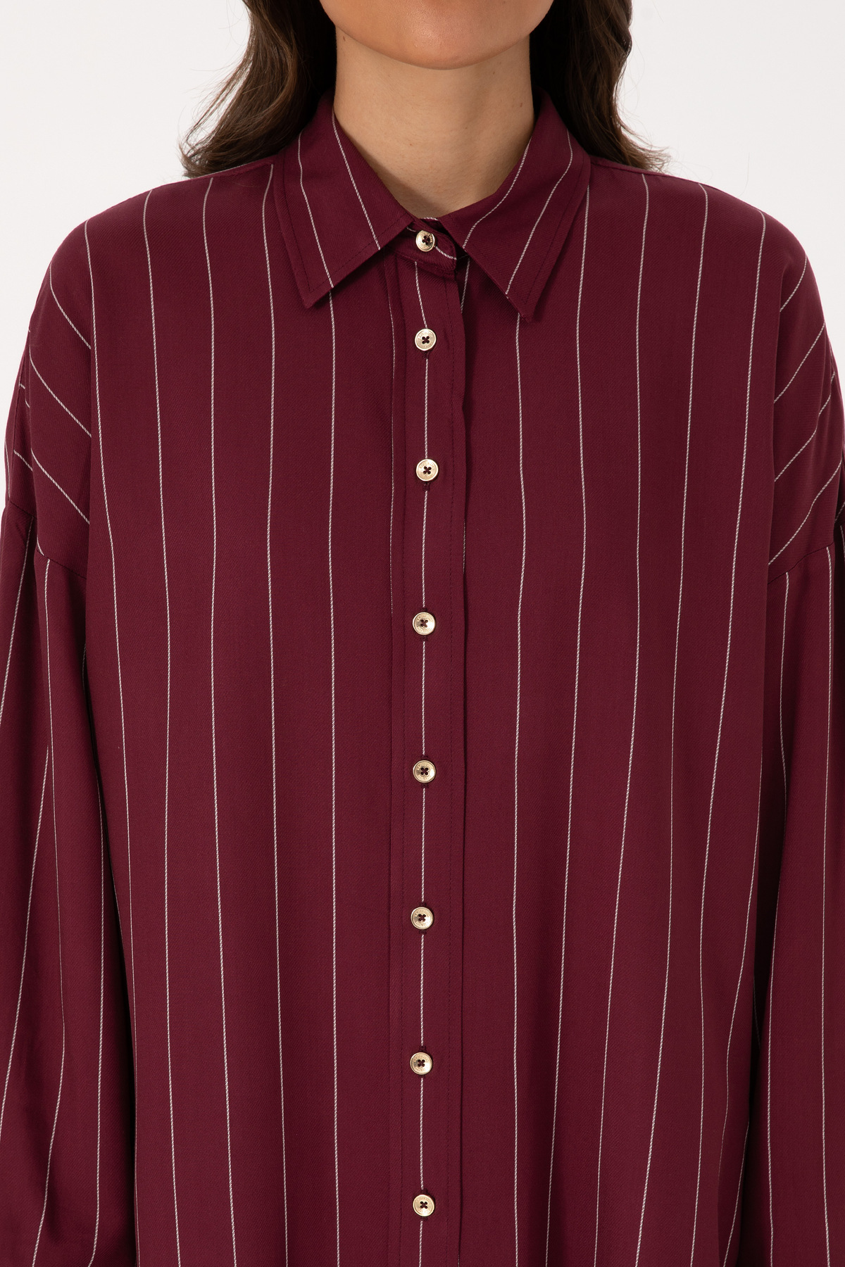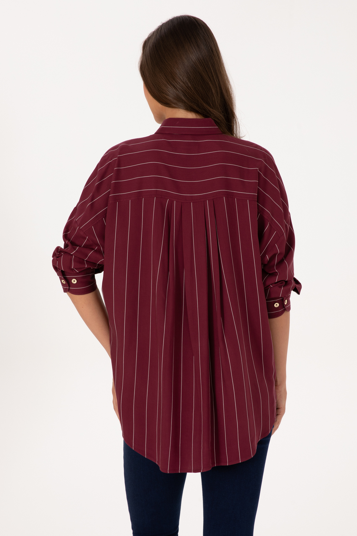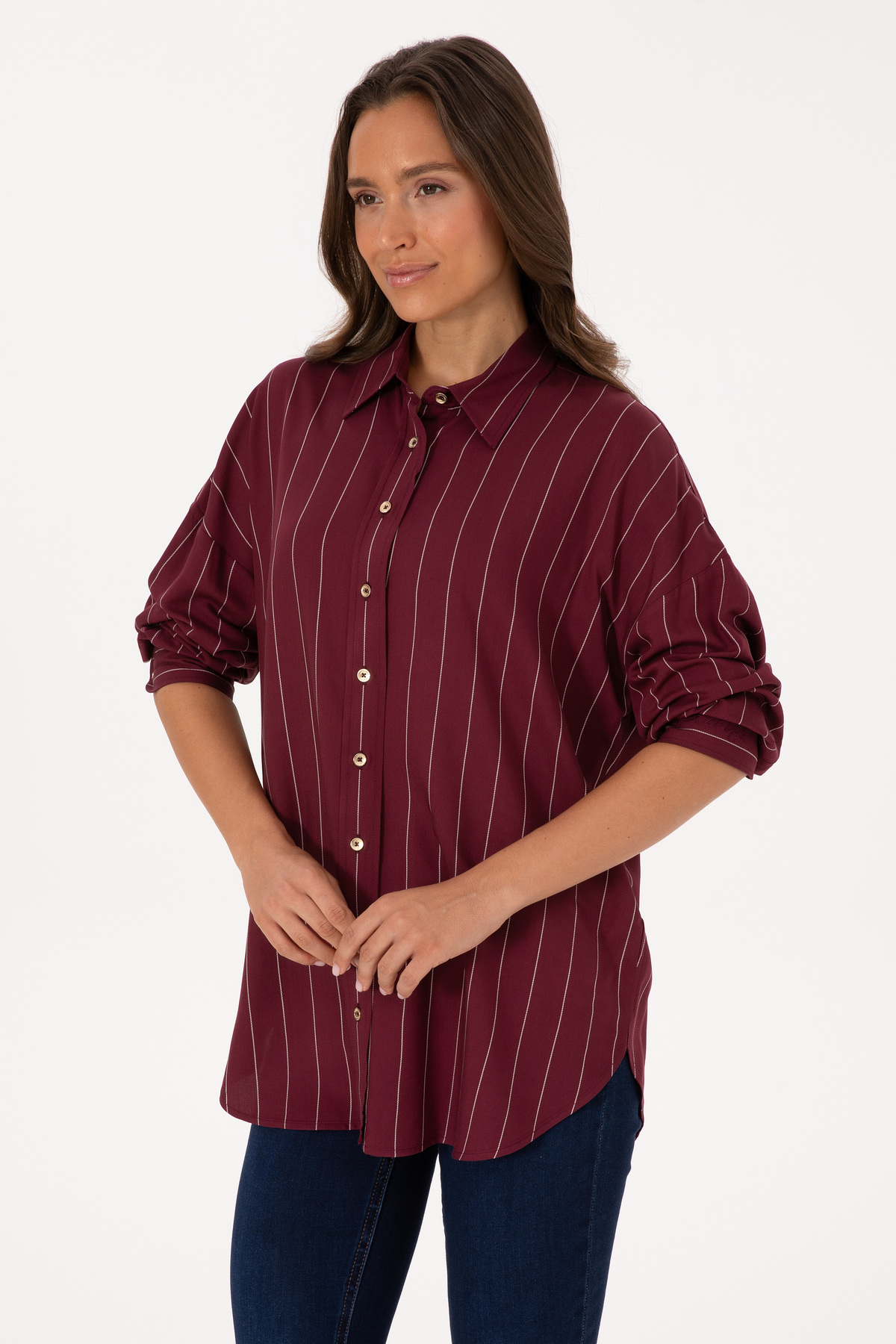 پیراهن آستین بلند راه راه زرشکی زنانه یو اس پولو کد :(50308768-VR177)