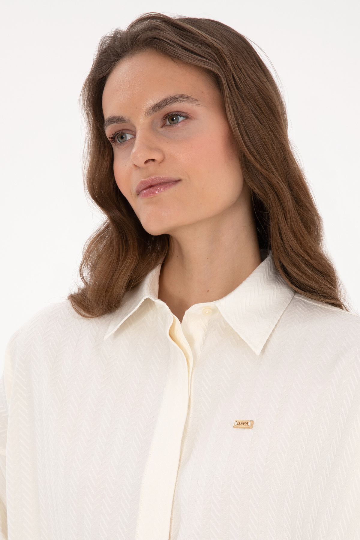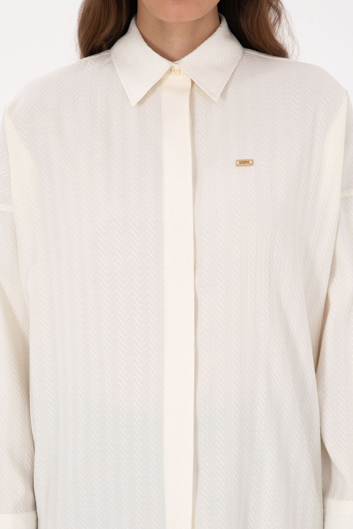 پیراهن زنانه آستین بلند کرم رنگ طرحدار سایز بزرگ یو اس پولو کد :(50316422-VR256)