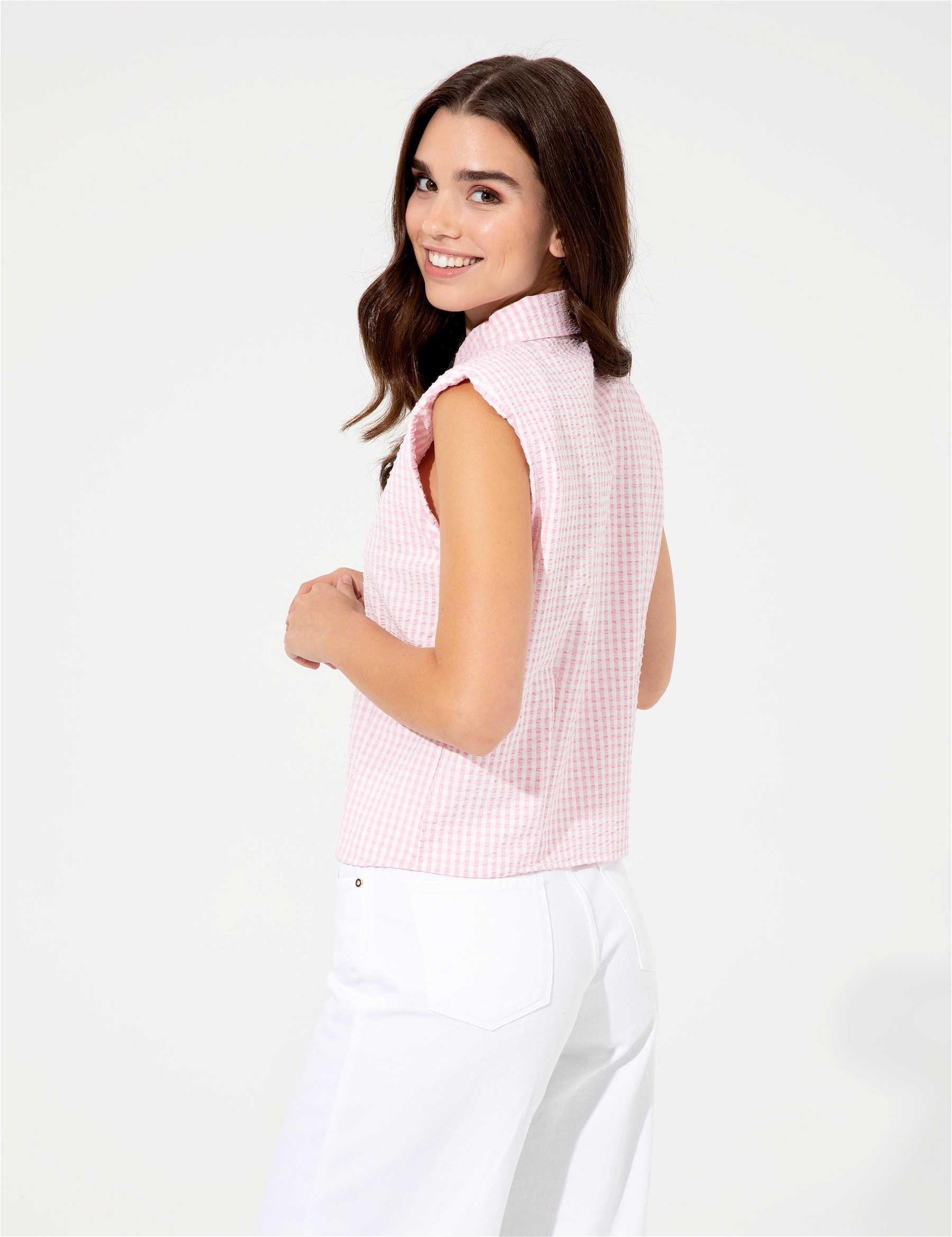 پیراهن آستین دار کوتاه کراپ بدون آستین بنفش پیر کاردین