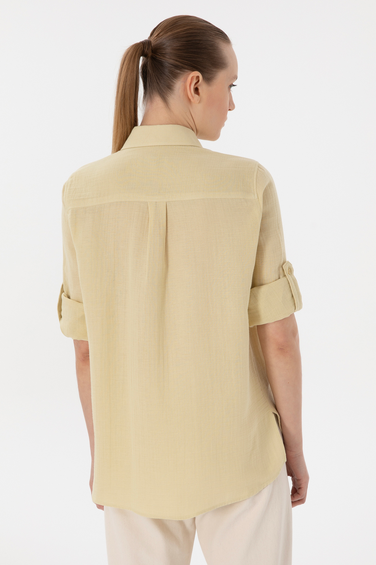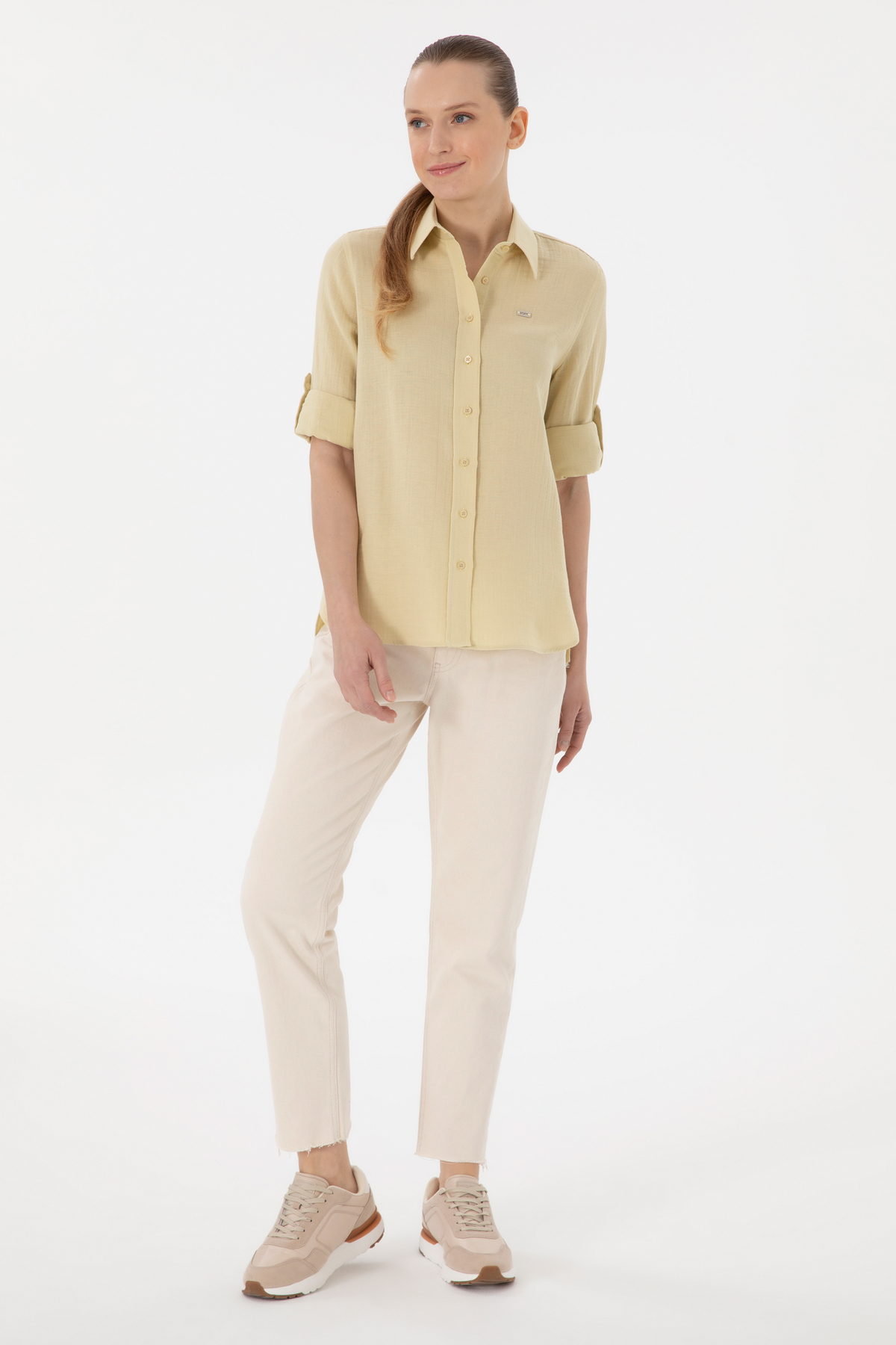 پیراهن تونیک آستین بلند خاکی روشن زنانه یو اس پولو کد :(50306473-VR183)