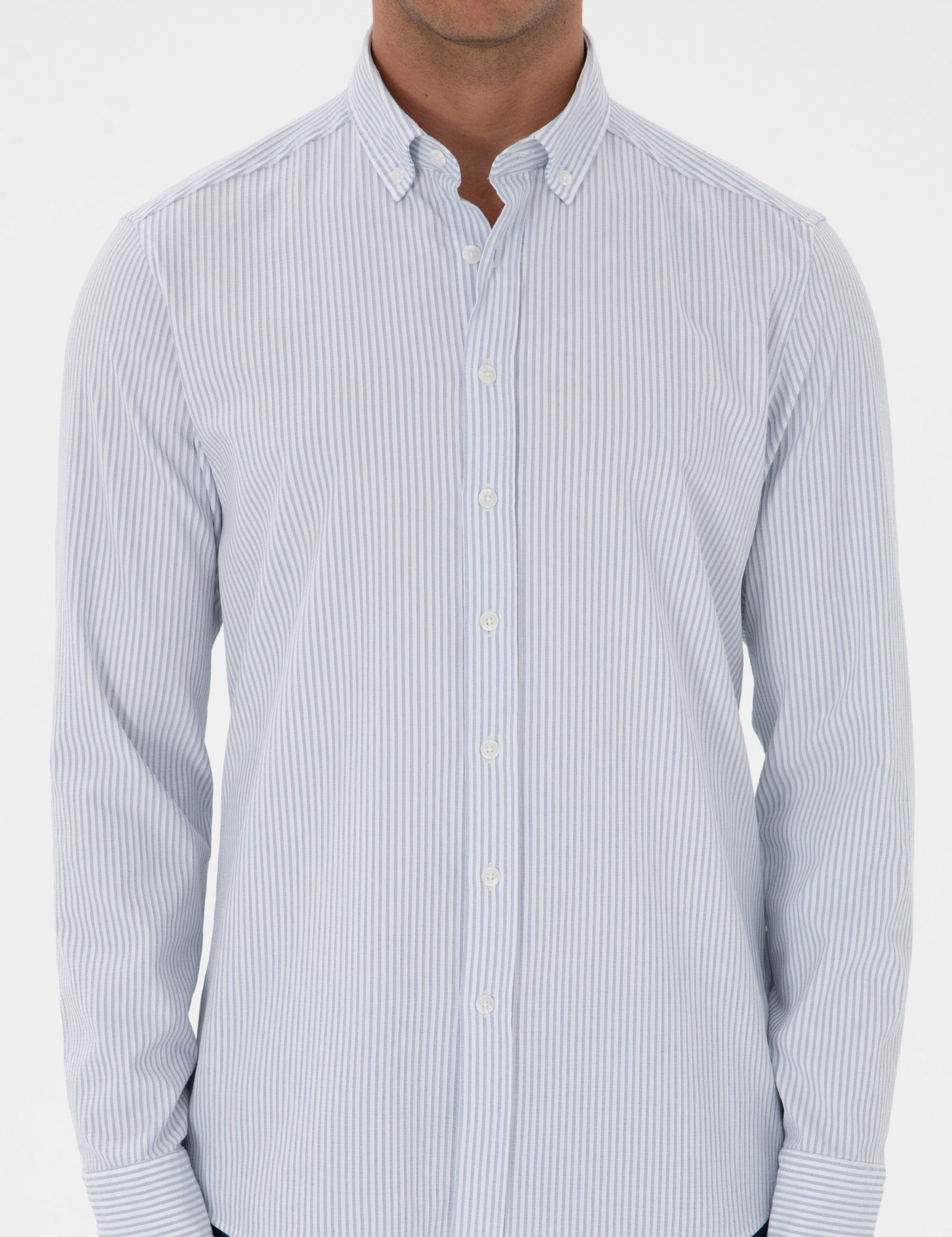 پیراهن اسلیم فیت راه راه اسلیم فیت نیلی پیرکاردین