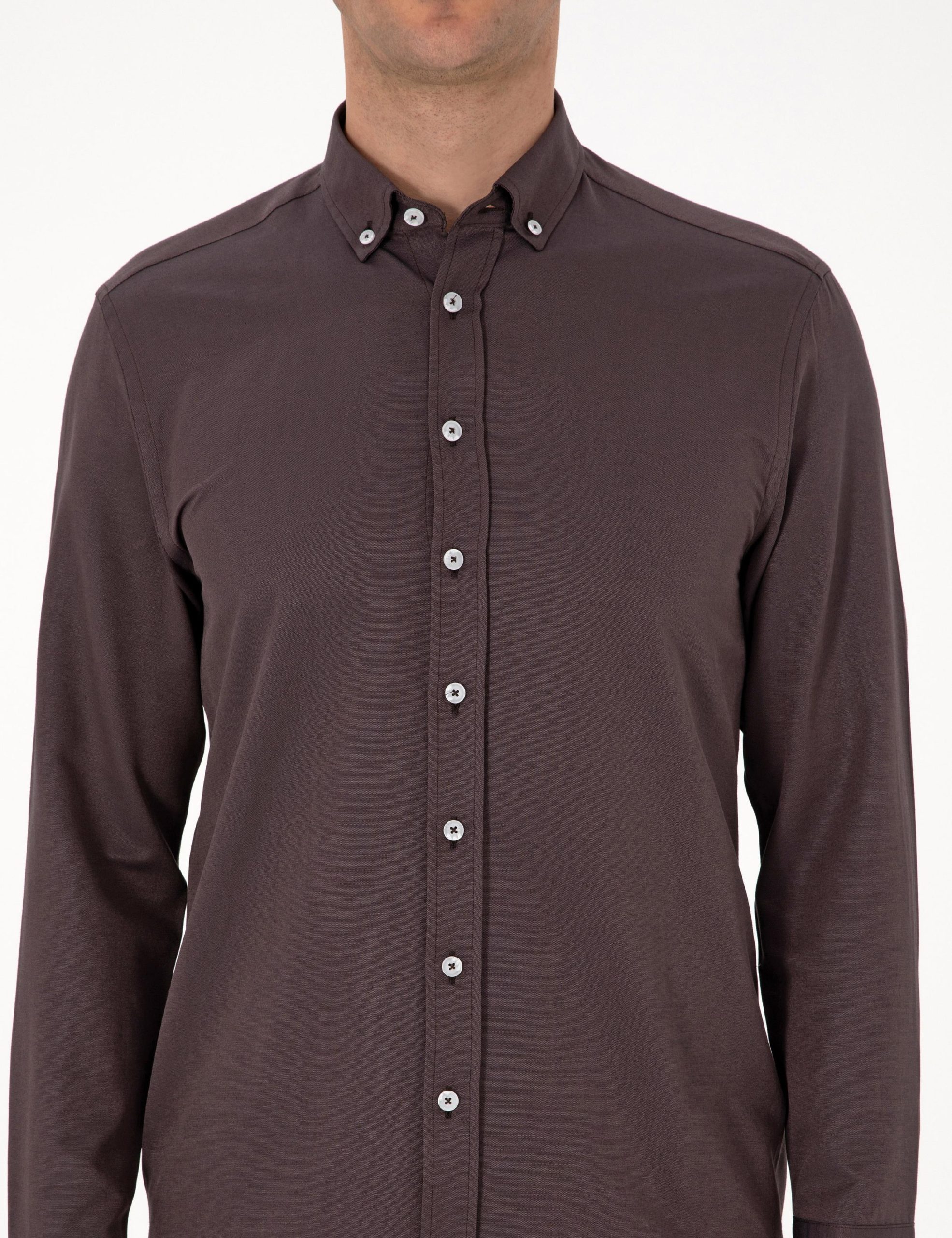 این پیراهن آستین بلند آکسفورد، با رنگ قهوه ای خود، ظاهری پیچیده را ارائه می دهد. تناسب منظم آن ظاهری راحت و در عین حال ساختار یافته را تضمین می کند. یقه دکمه‌دار، حسی اسپرت را به ظرافت کلاسیک اضافه می‌کند و به آن اجازه می‌دهد در لباس‌های مختلف بپوشید. طراحی بدون جیب آن یک شبح مینیمال و ظریف ایجاد می کند، در حالی که دوام و غنای بافت پارچه آکسفورد پوشیدن طولانی مدت را تضمین می کند. به راحتی می توان آن را با شلوار پارچه ای برای دفتر یا با شلوار چینی یا جین برای پوشیدن آخر هفته ست کرد. این به تنهایی یا با یک ژاکت کش باف پشمی سبک در طول انتقال فصل به زیبایی جفت می شود.
