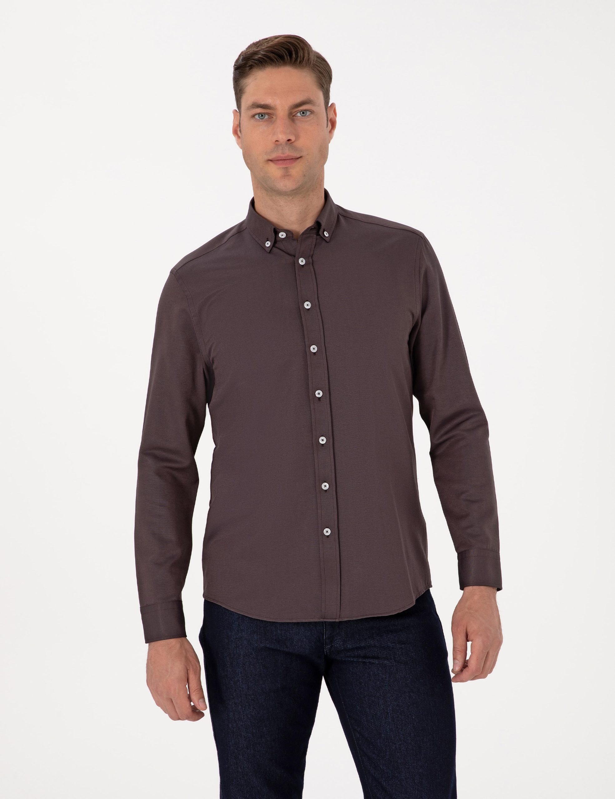 پیراهن آستین بلند رگولار رنگ قهوه ای تیره پیرکاردین