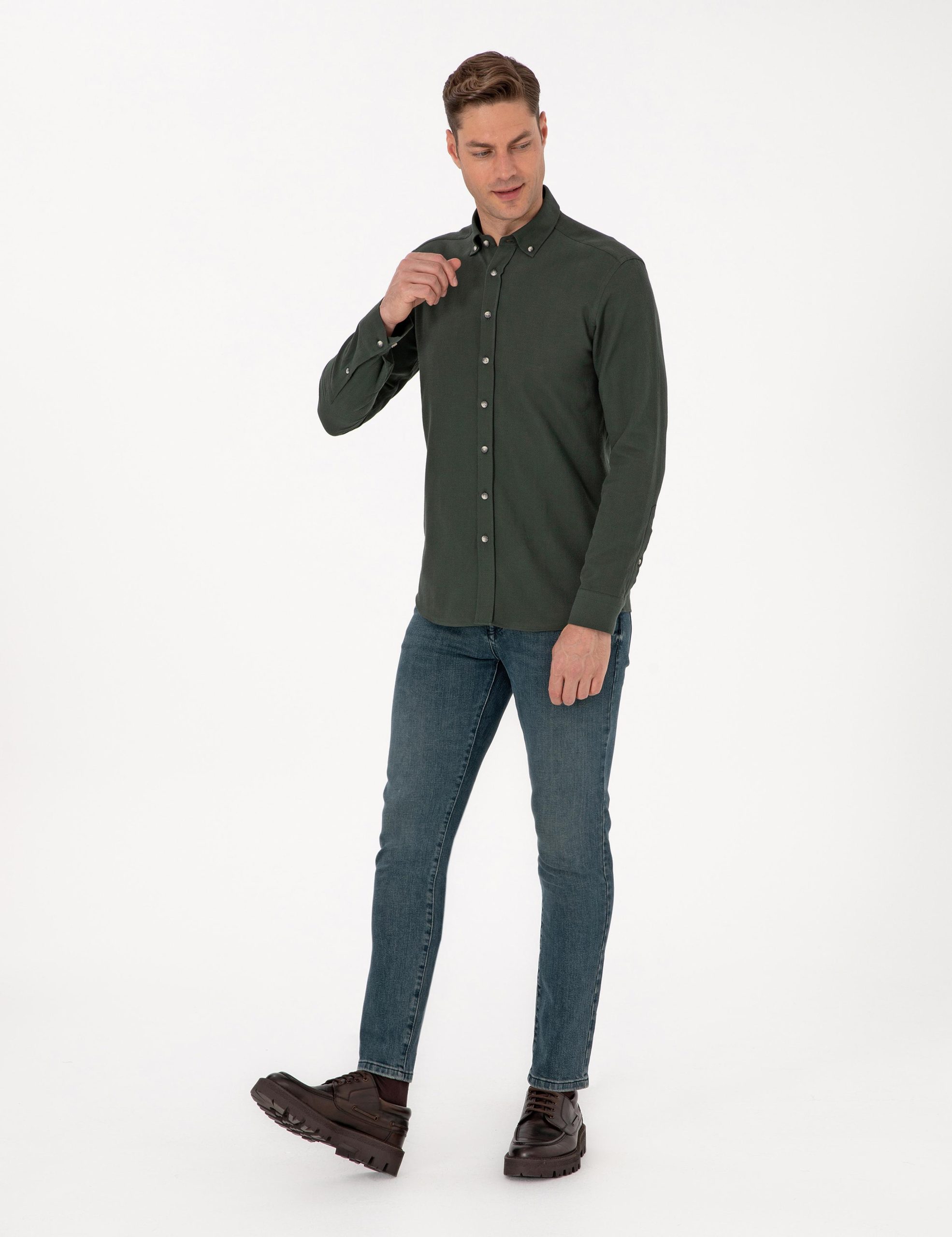 پیراهن آستین بلند اسلیم فیت خاکی تیره پیرکاردین
