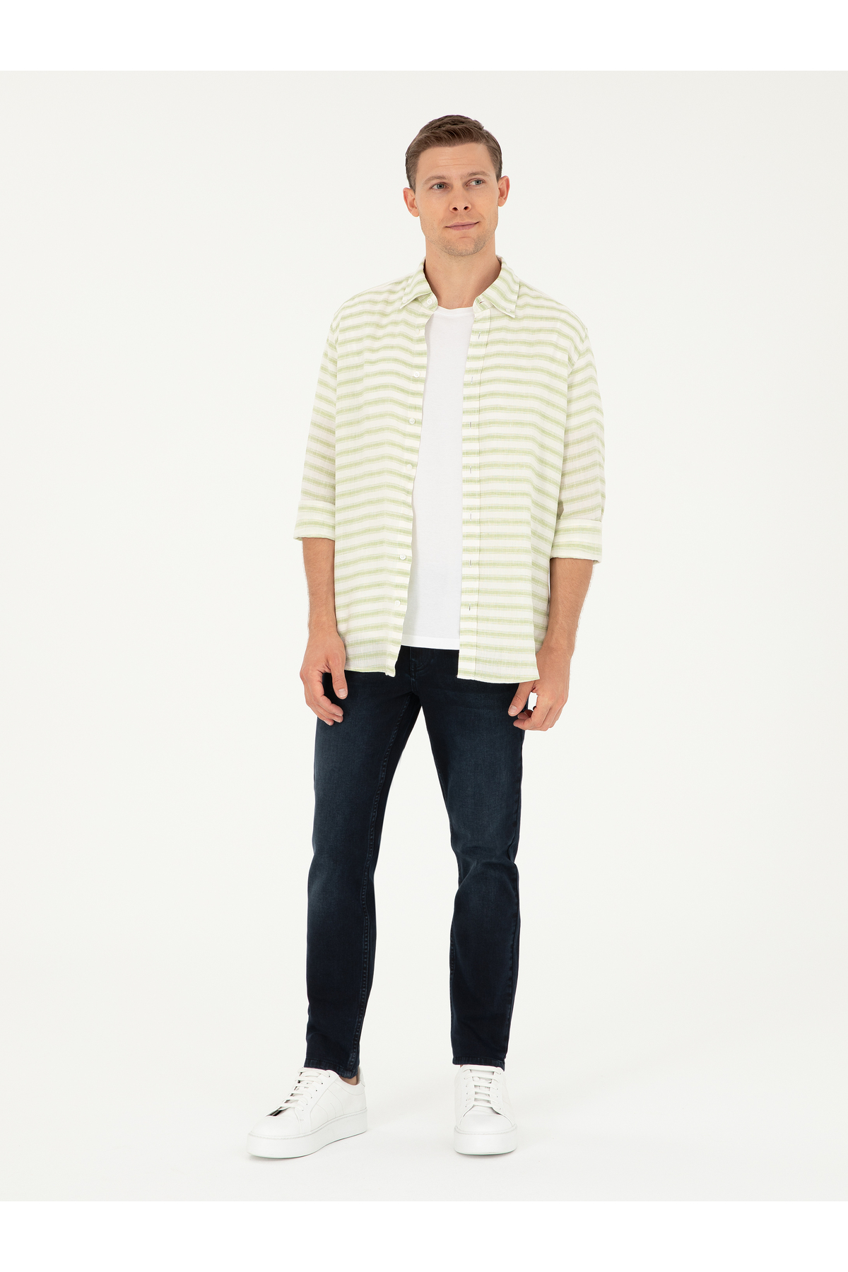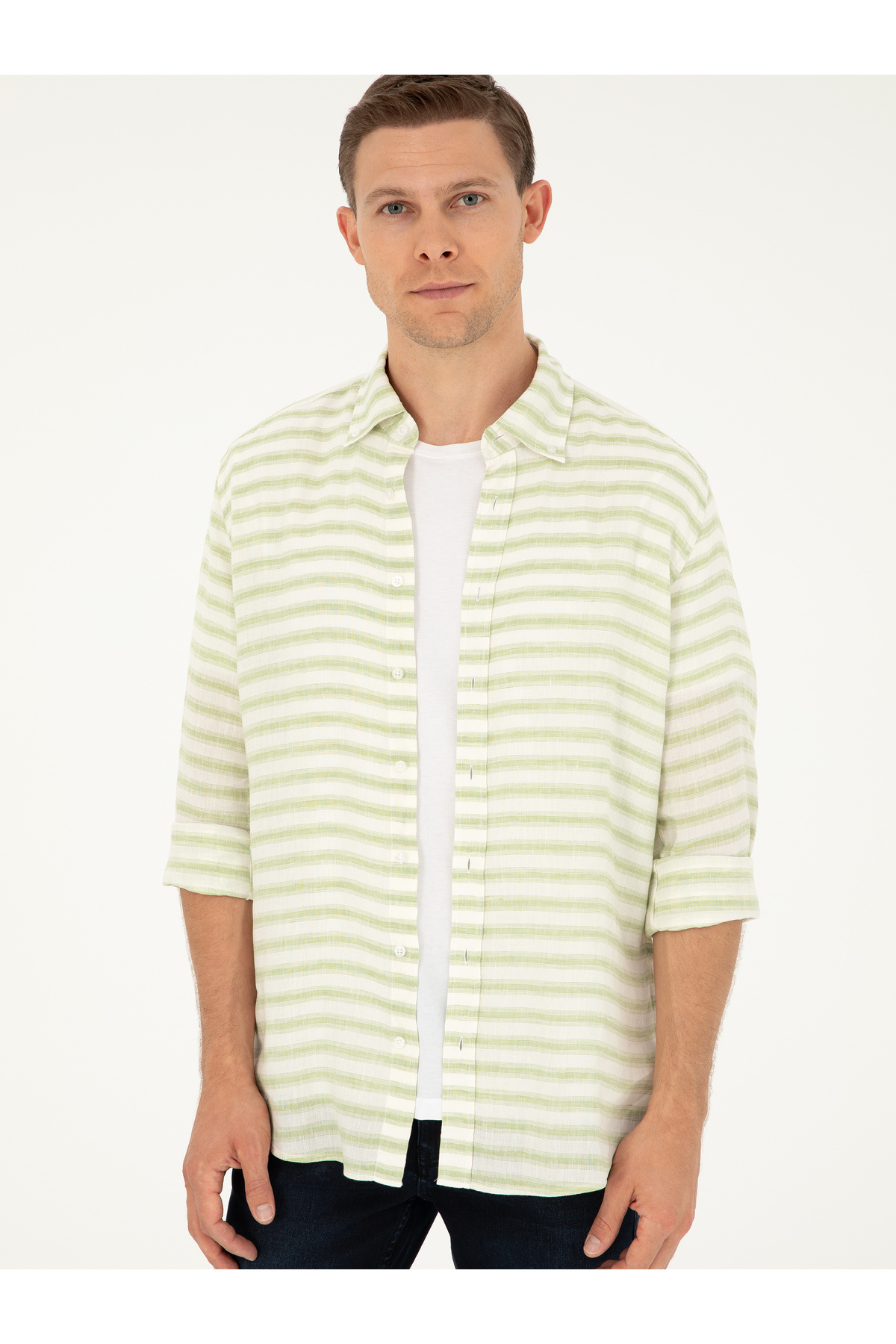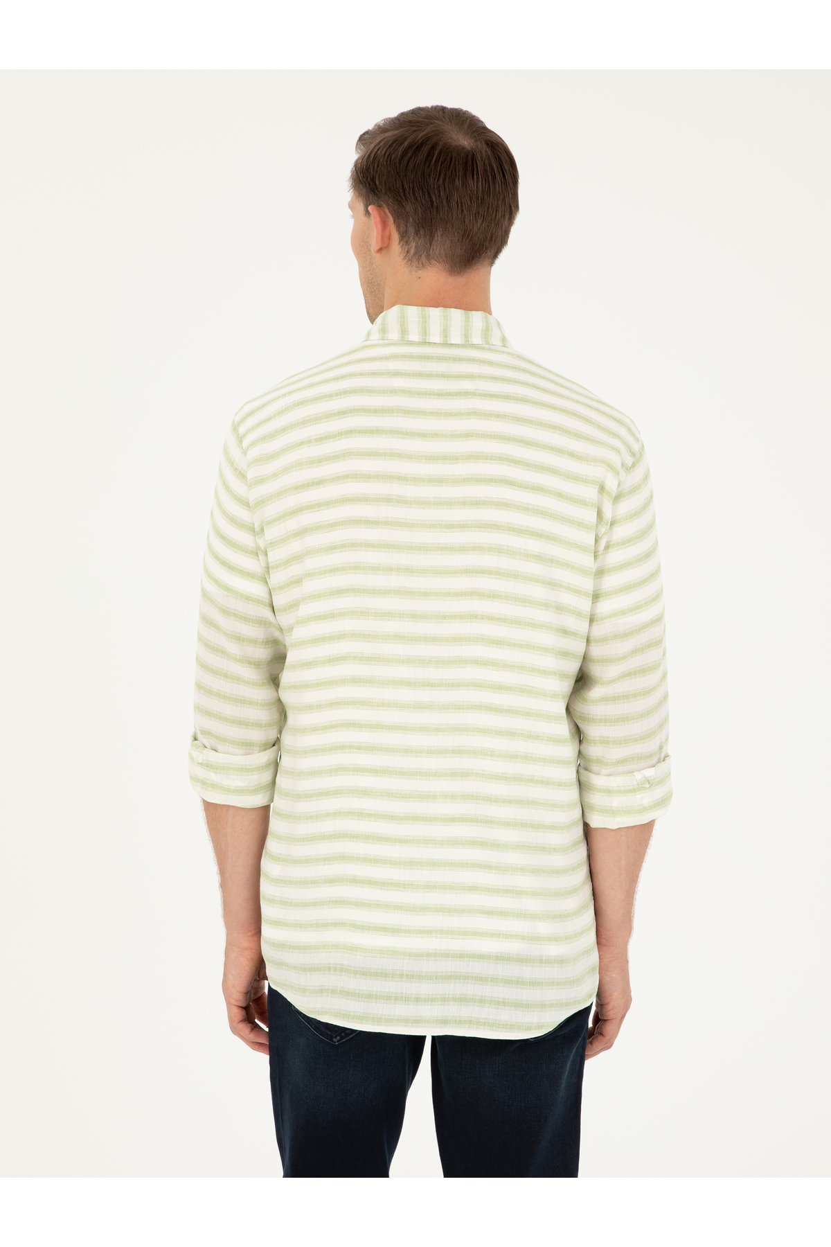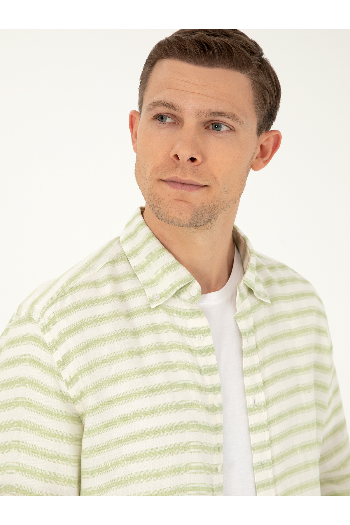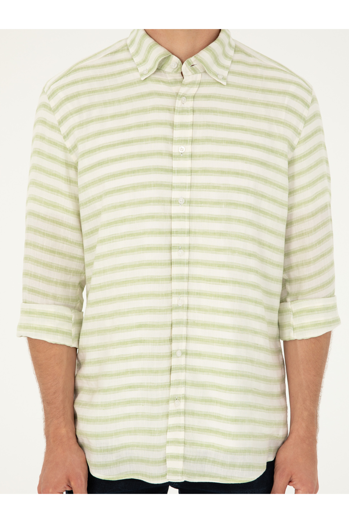 پیراهن آستین بلند اسلیم فیت طرح کتان سبز برند کاشارل کد:(50247552-VR054)