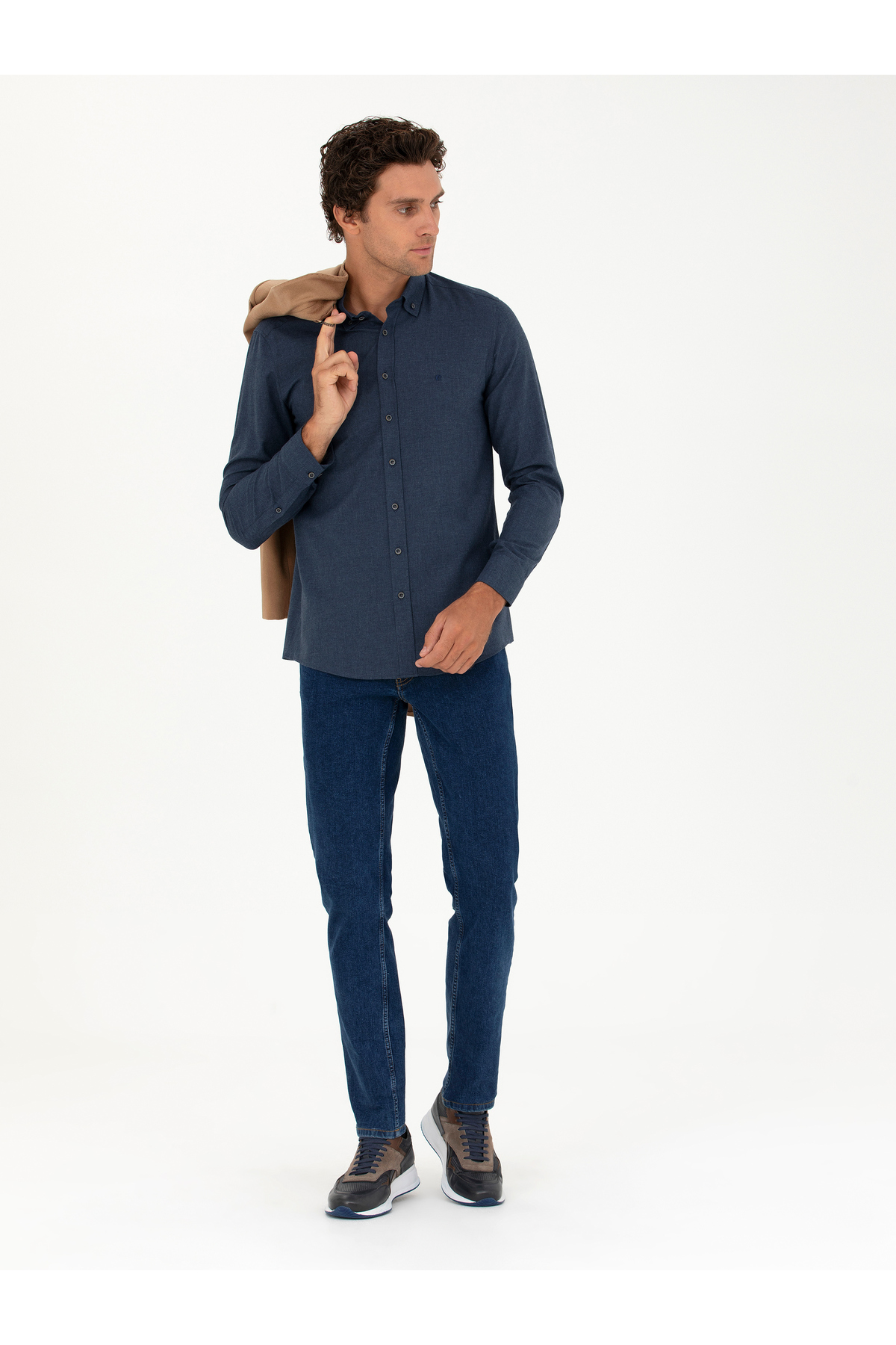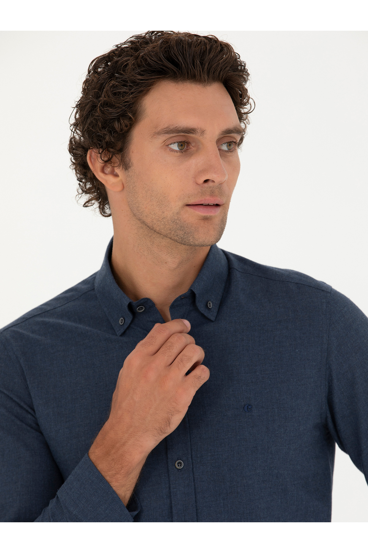 پیراهن آستین بلند اسلیم فیت سرمه‌ای برند کاشارل کد:(50279988-VR033)