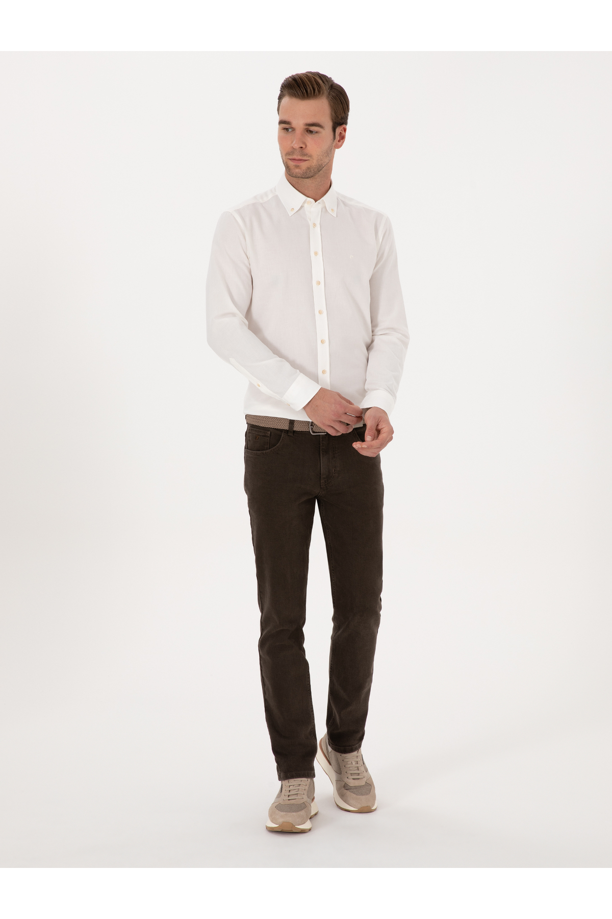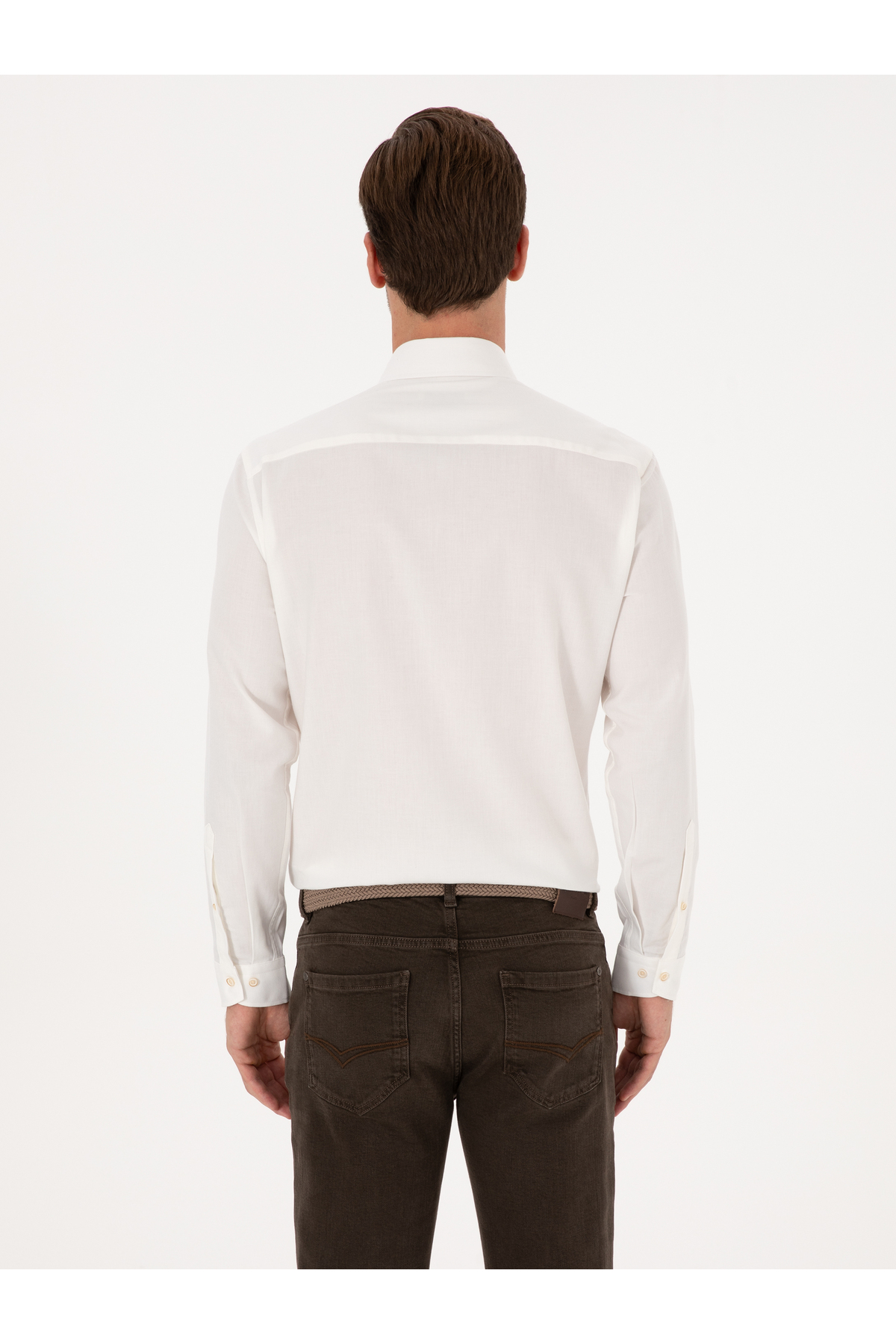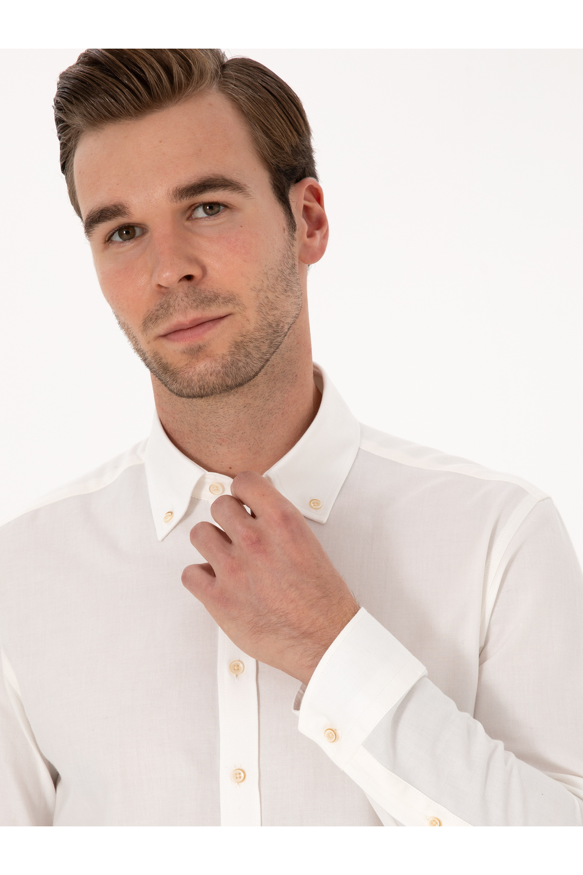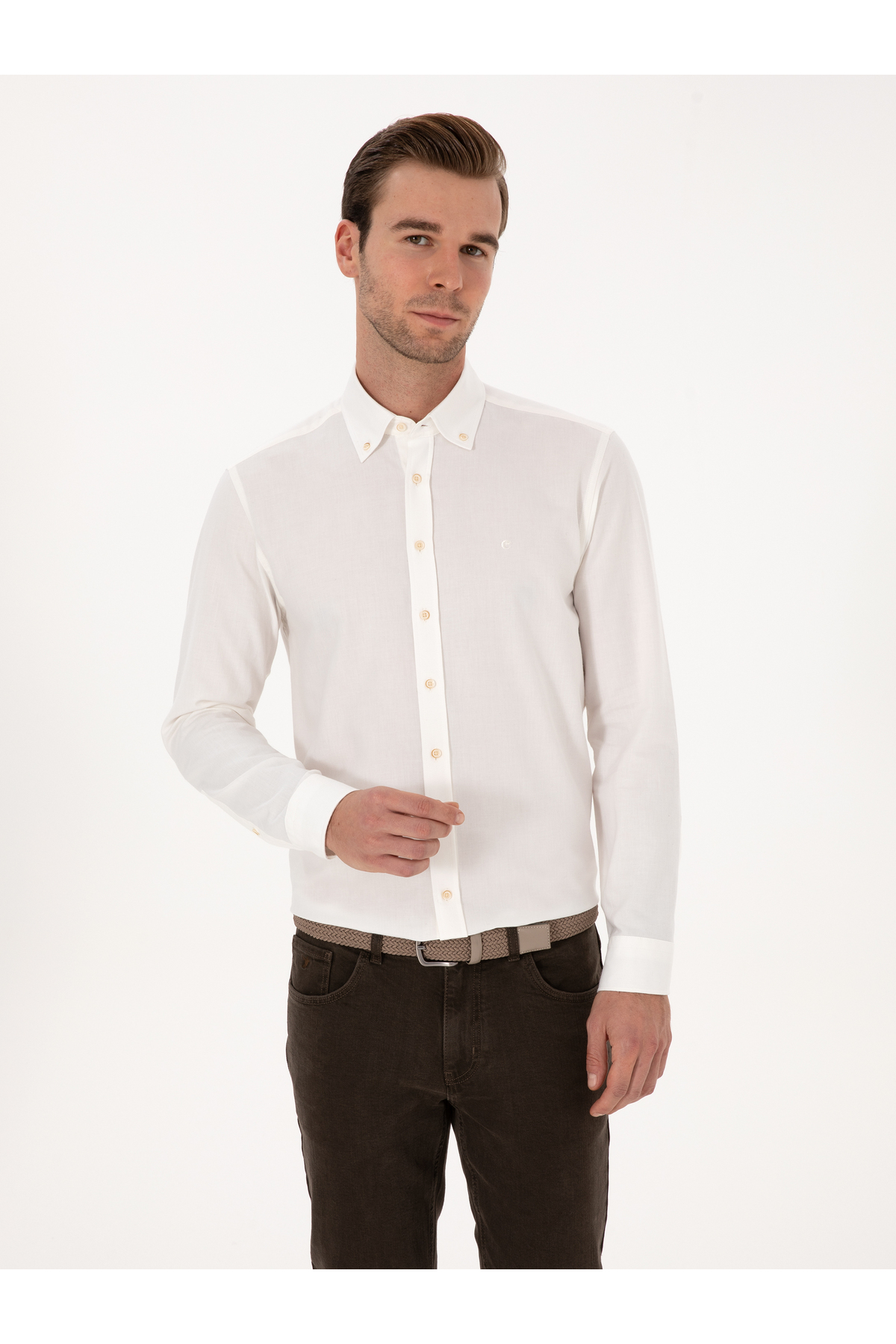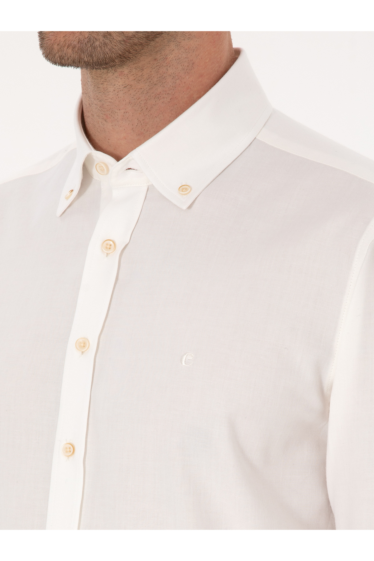 پیراهن فلانل دکمهدار ۱۰۰٪ پنبهای سفید اسلیم فیت برند کاشارل کد:(50313122-VR013)
