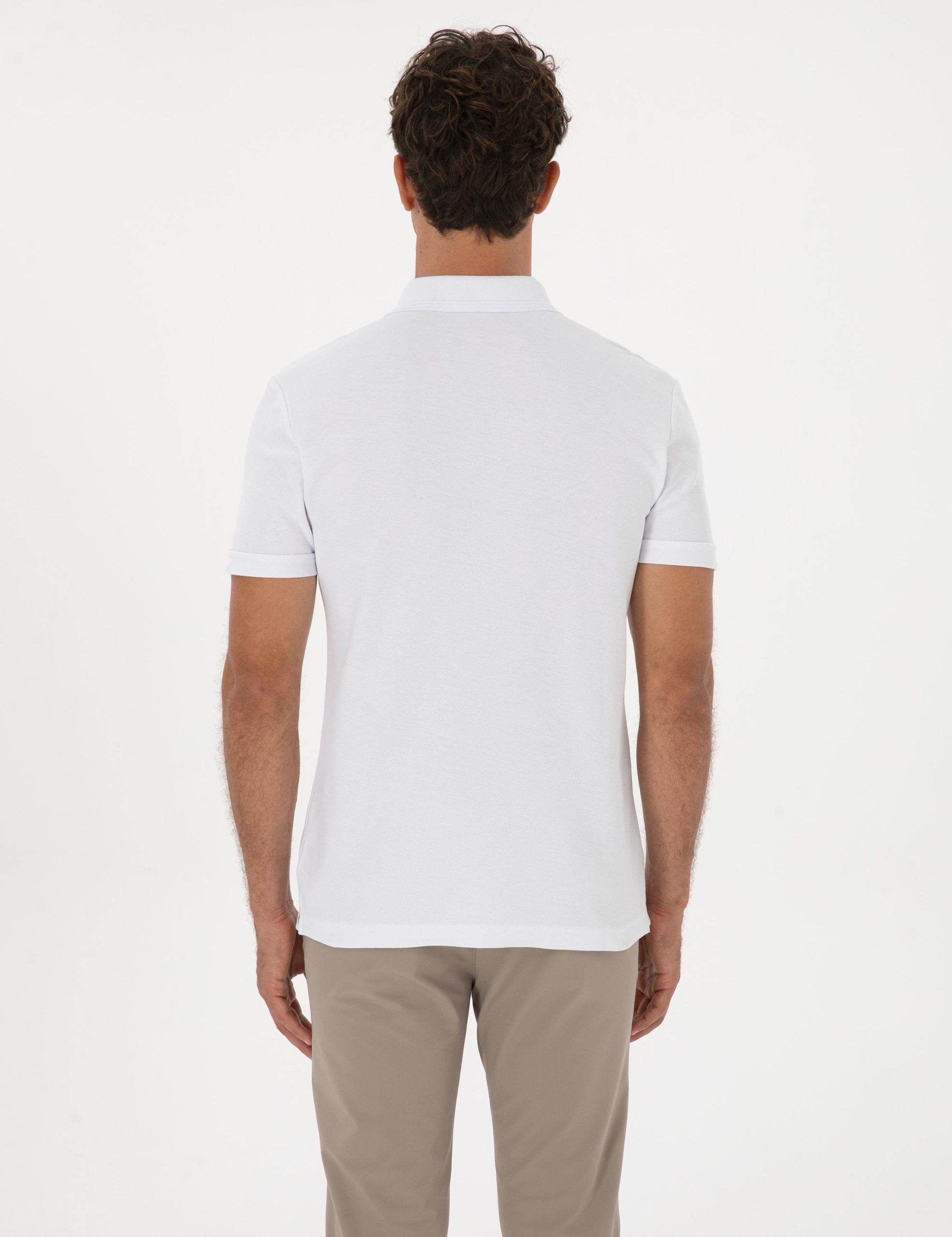 تی شرت بیسیک یقه پولو پیکه آمریکایی ضد چروک نخ 100% اسلیم فیت سفید پیرکاردین