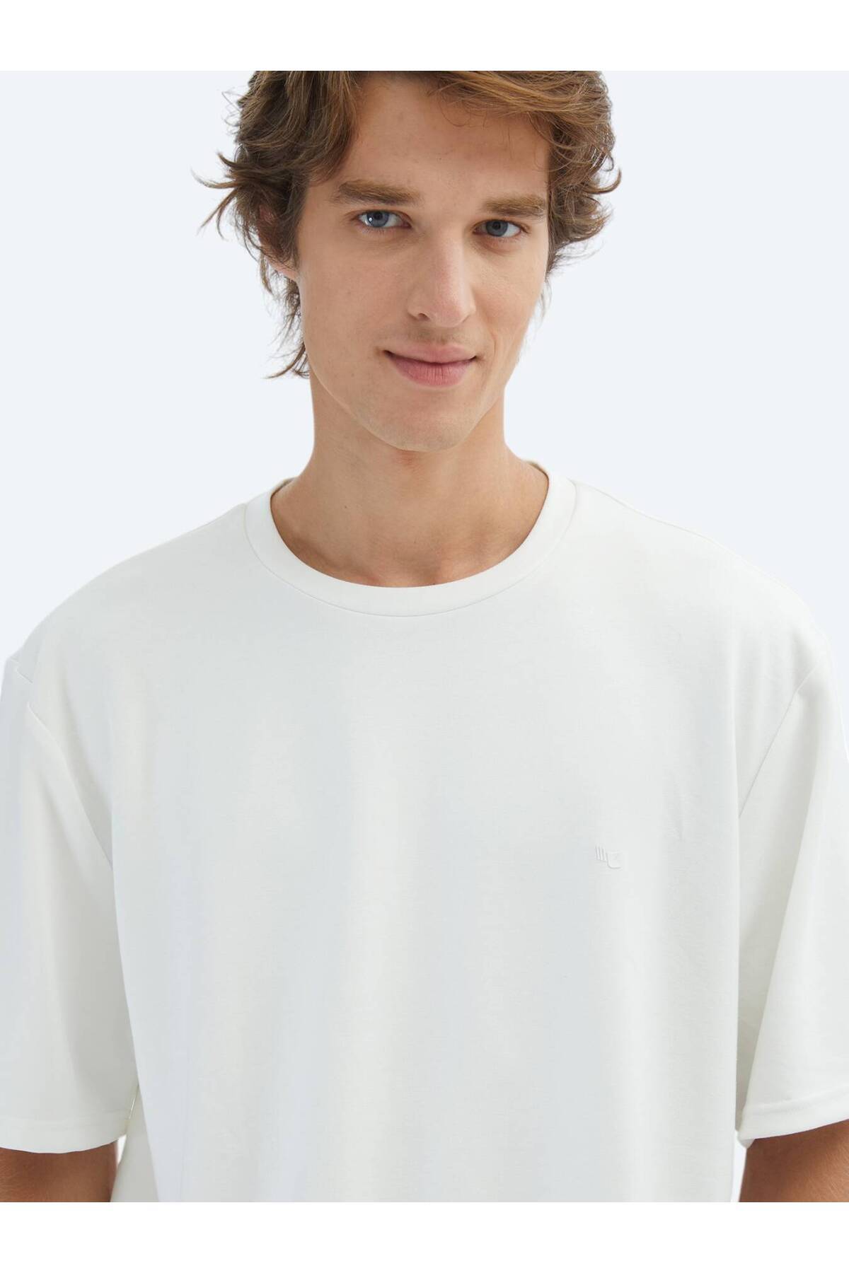 تیشرت یقه گرد ساده سفید مایل به کرم