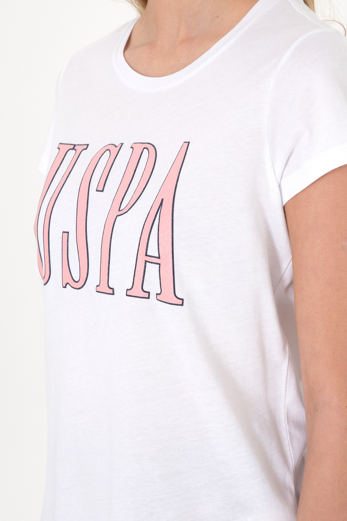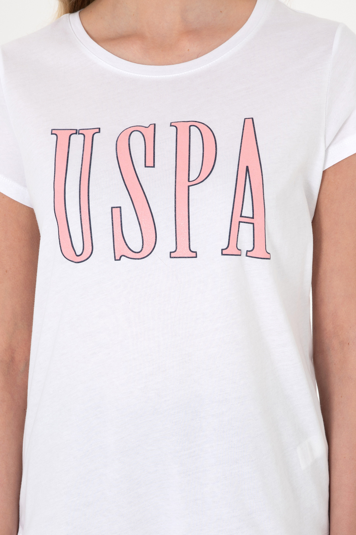 تیشرت یقه گرد سفید زنانه یو اس پولو کد :(50305842-VR013)