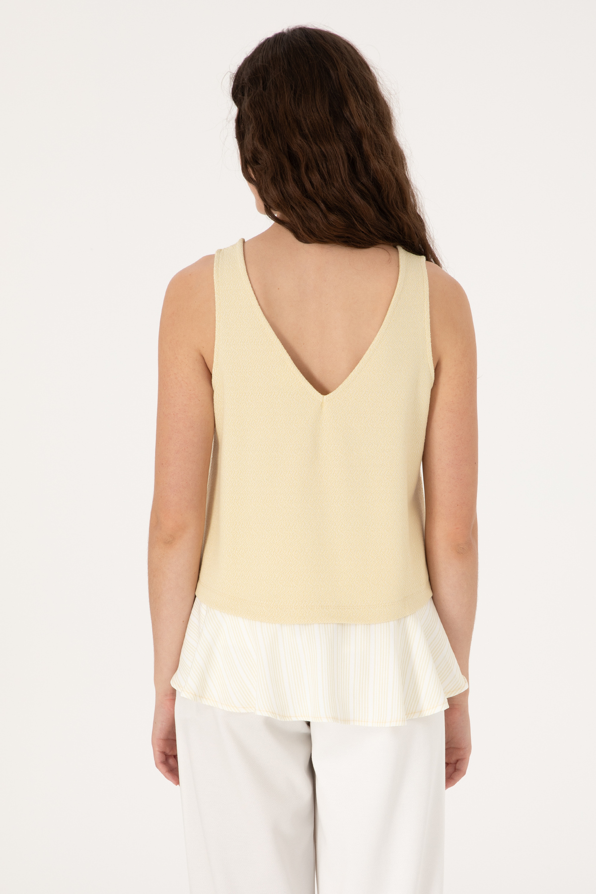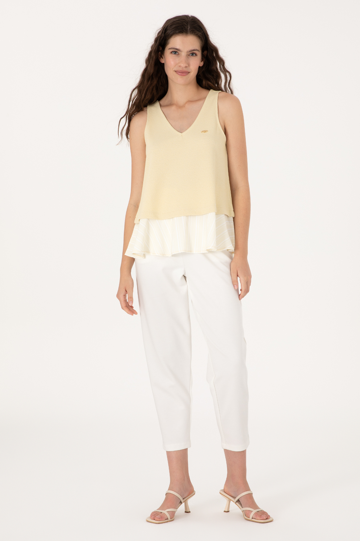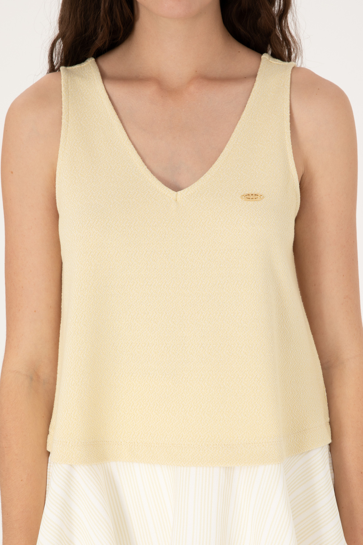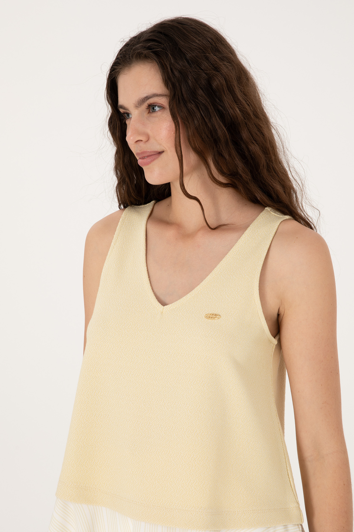 تیشرت یقه هفت بدون آستین خاکی روشن زنانه یو اس پولو کد :(50300672-VR183)